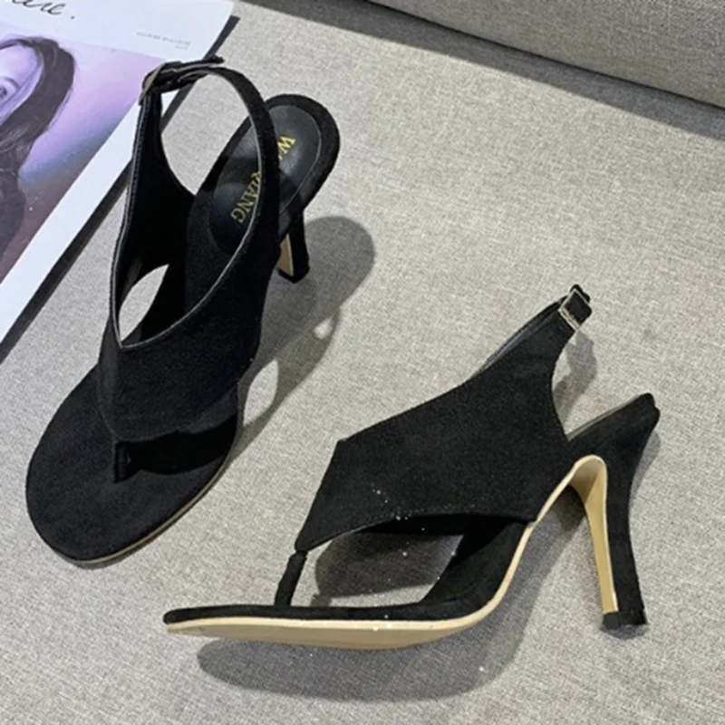 Женские босоножки с ремешками на лодыжках; Вьетнамки на тонком каблуке; Летние женские элегантные сандалии с открытым носком; Женская Повседневная модная обувь