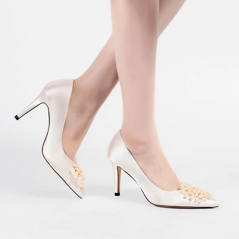 Новинка; Свадебные туфли с острым носком; Женские туфли-лодочки на высоком каблуке; Вечерние модельные туфли на тонком каблуке 8 см с бисером