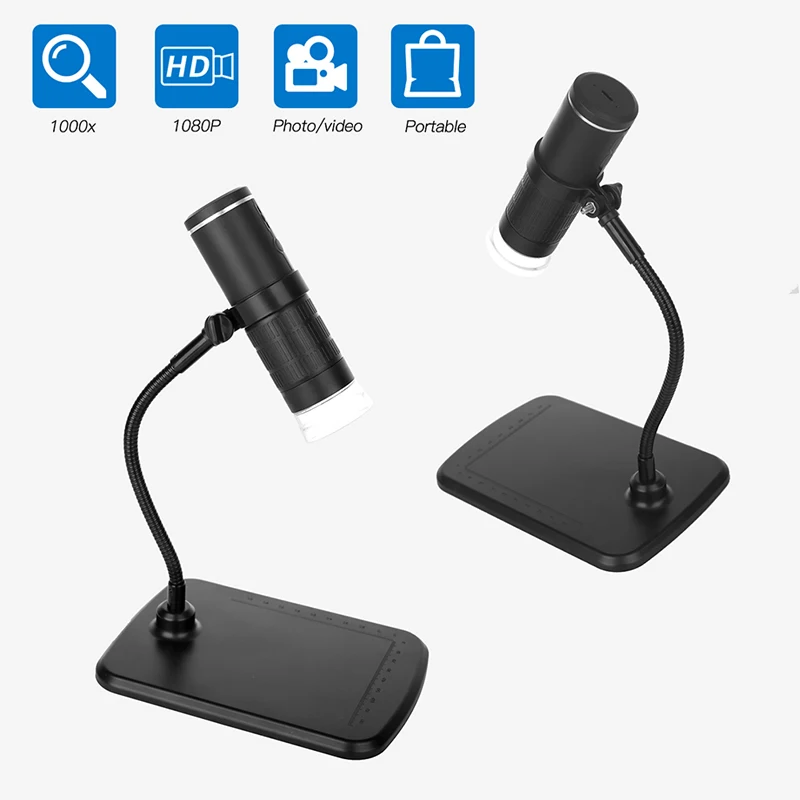 1. Увеличение и высокая четкость: 2 миллиона пикселей, 1080P HD качество изображения для смартфона, 720P для компьютера, 1000x больше увеличение может удовлетворить ваши ежедневные потребности. Встроенные 8 светодиодов с регулируемой яркостью обеспечивают достаточное освещение.