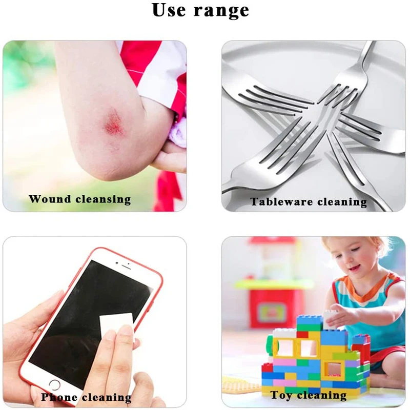 Используется для чистки рук, клавиатуры, мобильных телефонов, офисных принадлежностей, предметов для переноски, посуды и т. д.; Дезинфекция часто тронутых предметов, туалетных сидений и т. д.