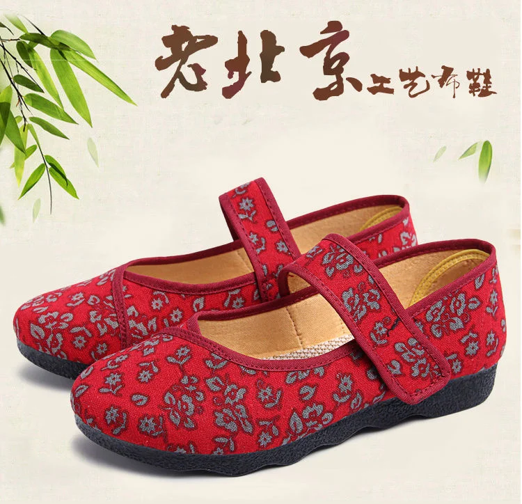 [Стоимость возврата упаковки] Тканевая обувь в стиле «Старый Пекин» женские тонкие туфли женская обувь больших размеров 43 обувь для мам новая обувь с вышивкой