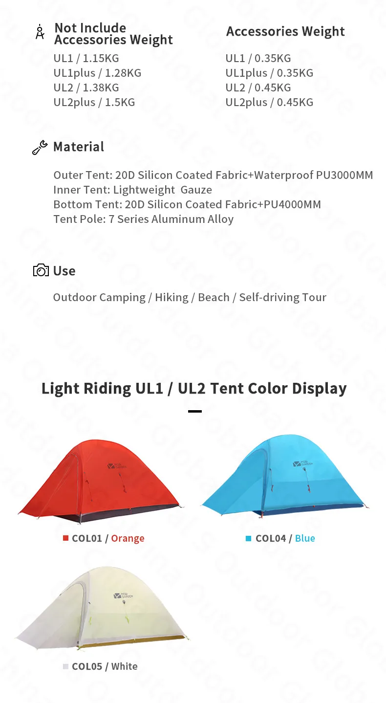 Список аксессуаров: Внешняя палатка/Внутренняя палатка/Палатка/напольный коврик/заземляющий гвоздь/аварийный столб