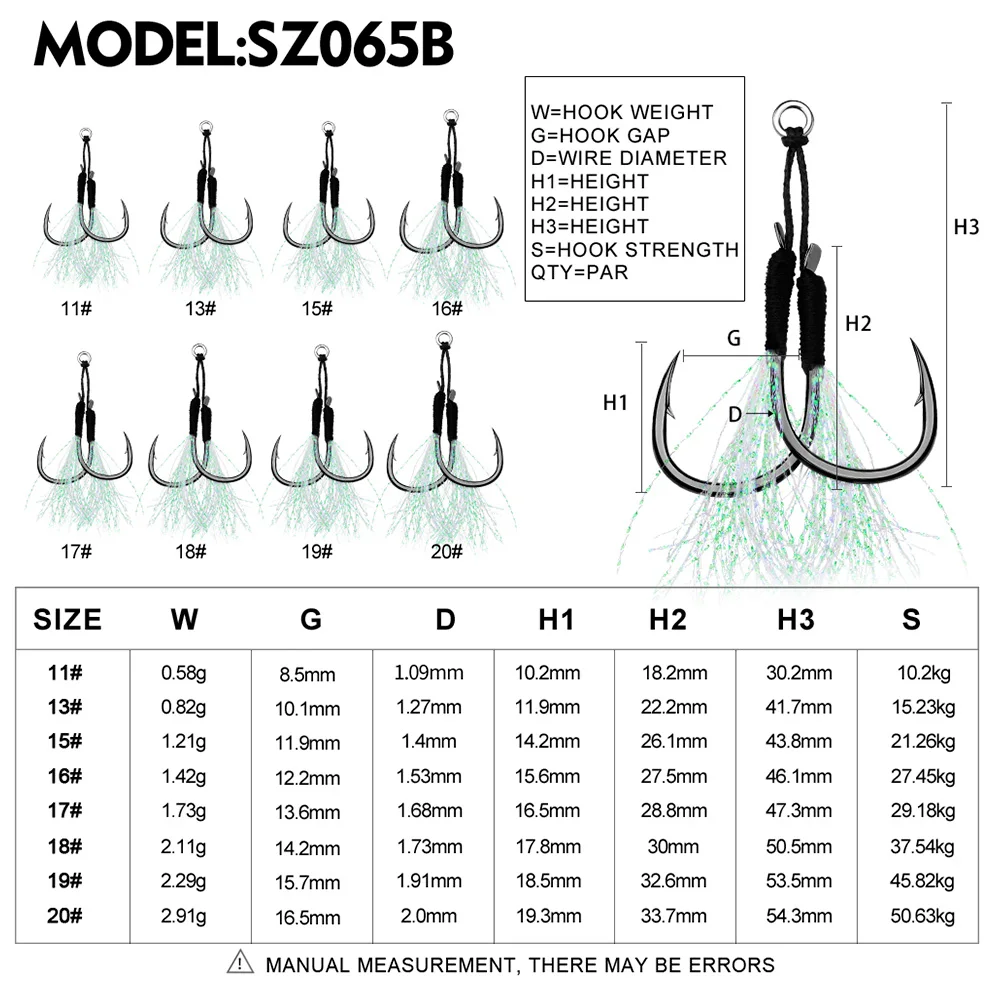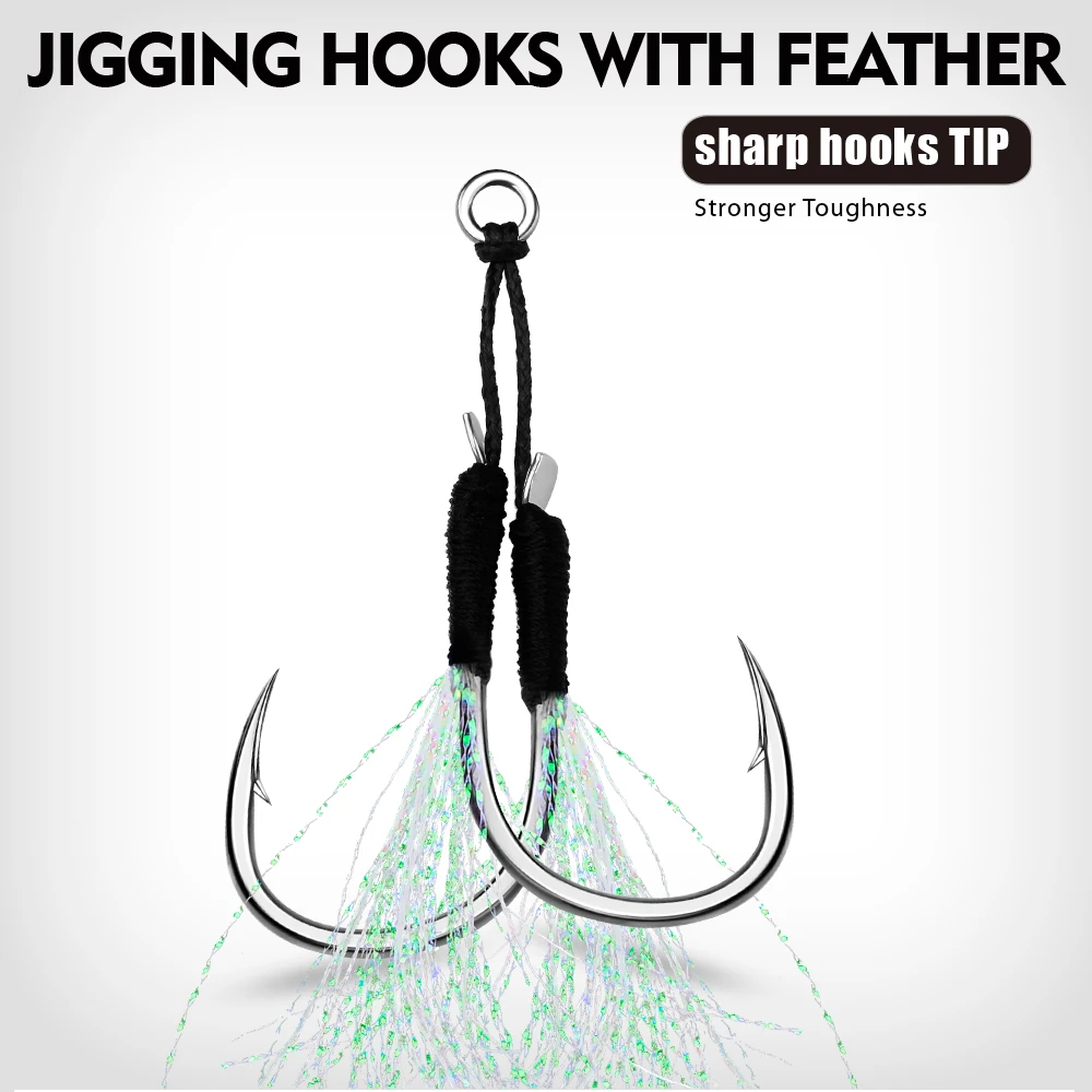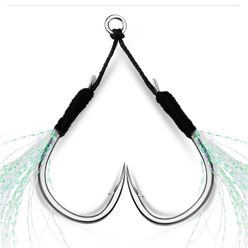 PROBEROS 5 пара/лот рыболовные крючки 11-13-15-16-17-18-19-20 # литые рыболовные крючки для джигггинга светящиеся двойные колючие крючки