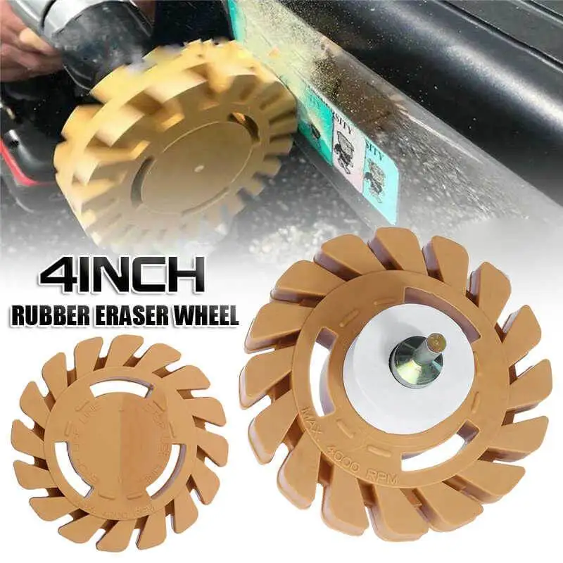 【Эффективный и удобныйРезиновое Полосатое колесо можетСкорость до 4000 об/мин. Он может быстро удалить наклейки, ленты, виниловую графику на поверхности транспортных средств или других продуктов.