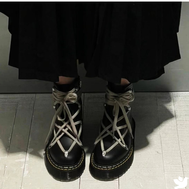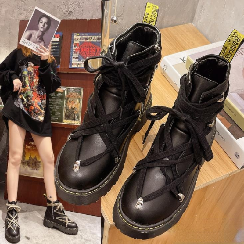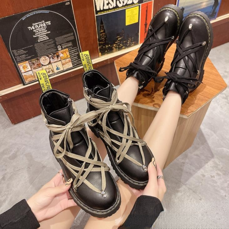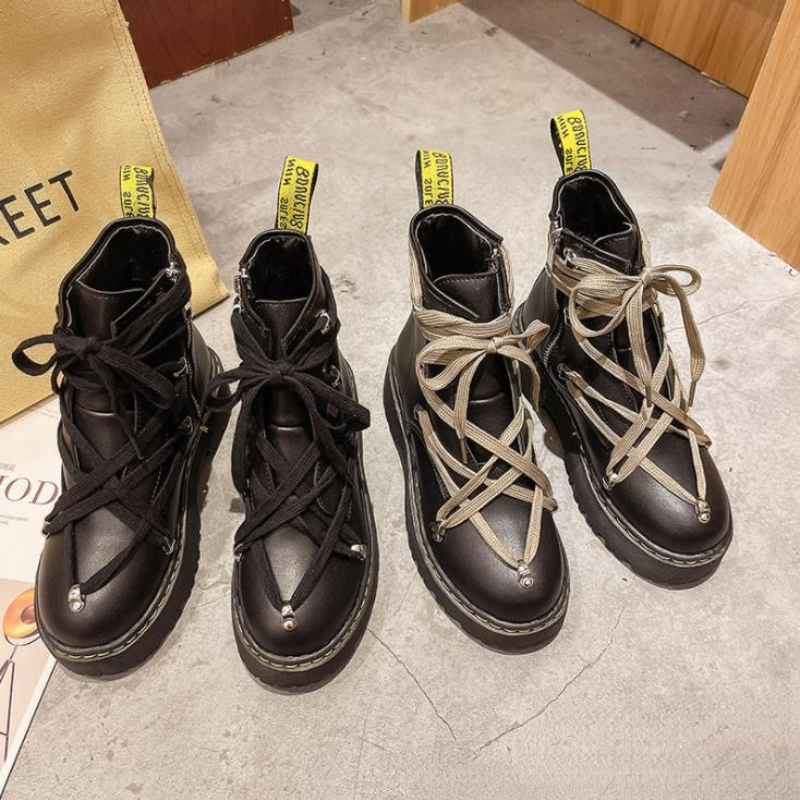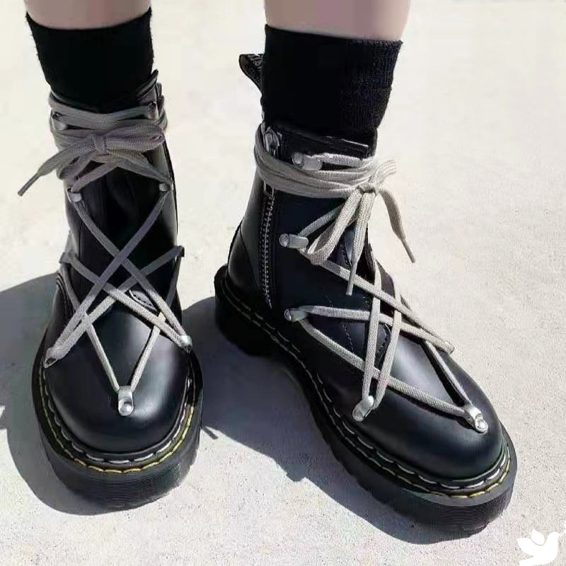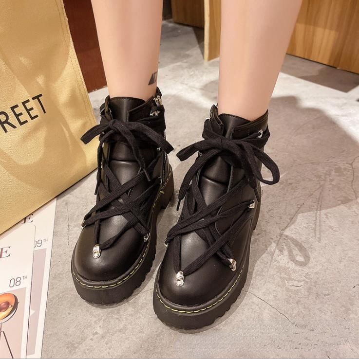 Женские ботинки из натуральной кожи с круглым носком на платформе | Обувь