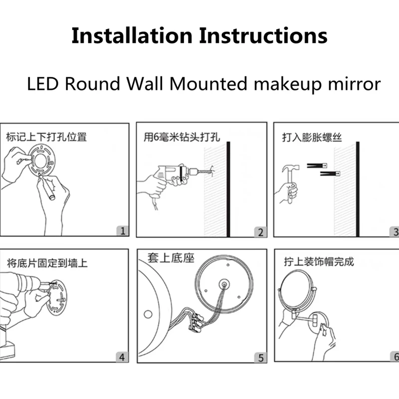 Этот продукт имеет зеркальный стержень может быть отрегулирован вверх и вниз, телескопический. Размер зеркала: 20 см