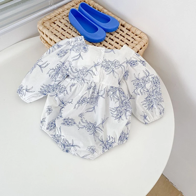 Engepapa/весенне-осенняя одежда для маленьких девочек; Комбинезон с длинными рукавами и цветочным принтом; Комбинезон с квадратным воротником; Одежда для малышей