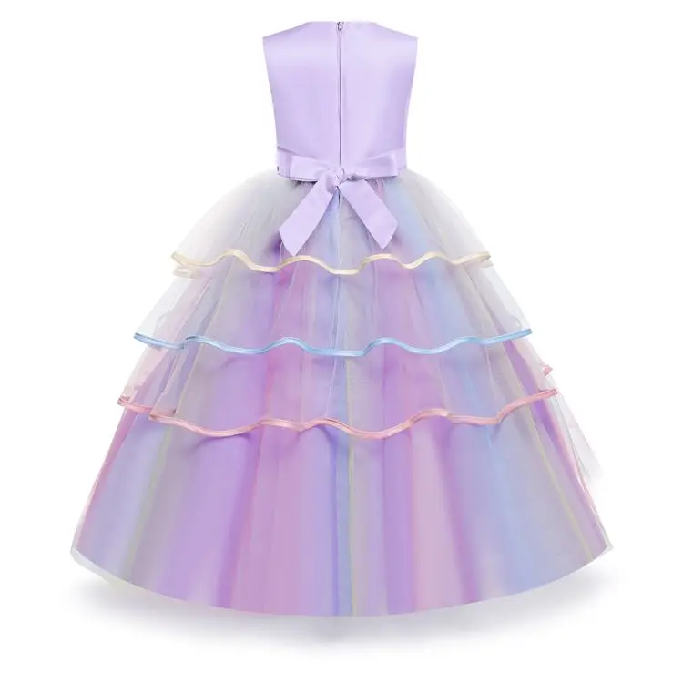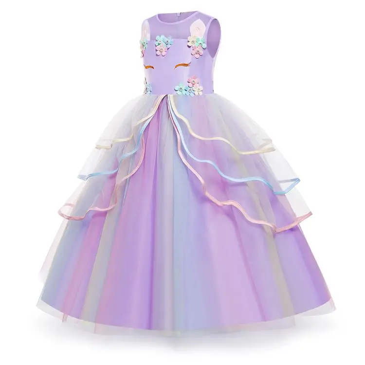Длинное рождественское платье принцессы с единорогом для девочек; Детские Свадебные вечерние бальные Платья с цветочным рисунком для детей; Радужный костюм для дня рождения; От 3 до 12 лет