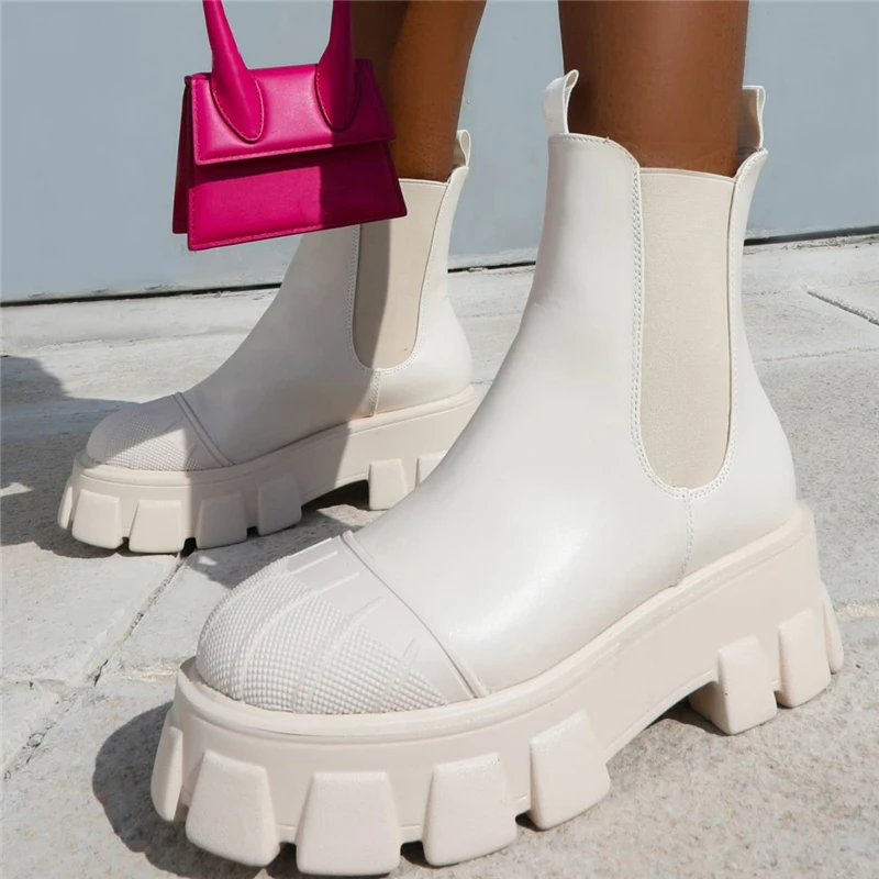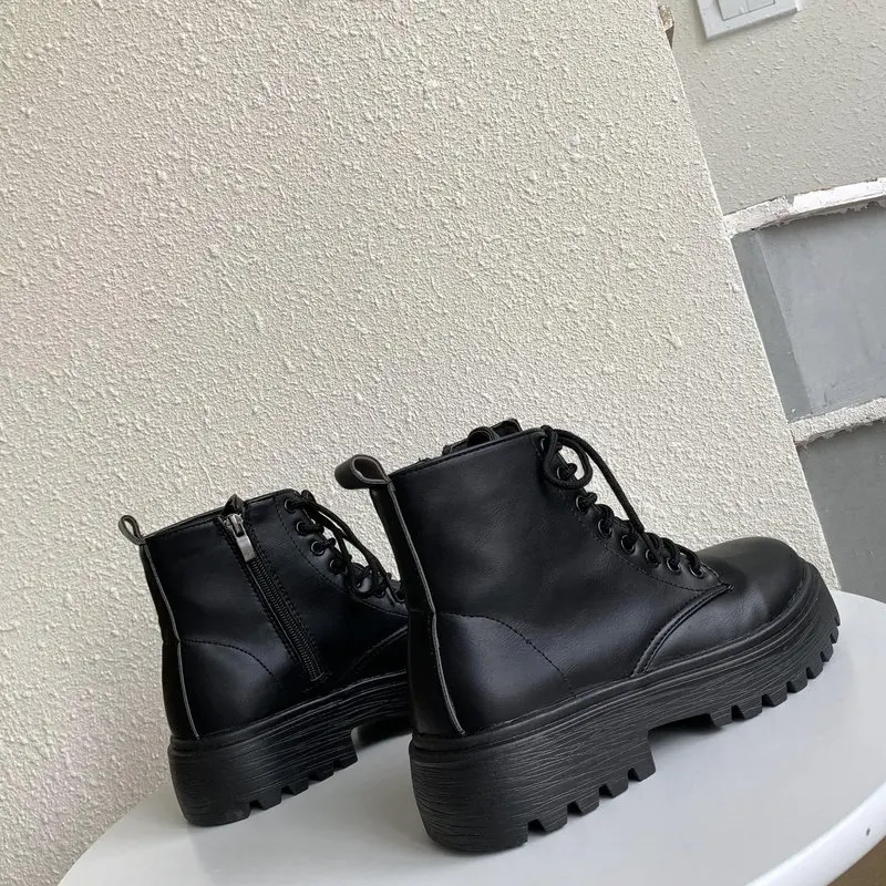 Женские ботинки; Черная обувь на платформе; Женские ботинки; Кожаные ботильоны в байкерском стиле