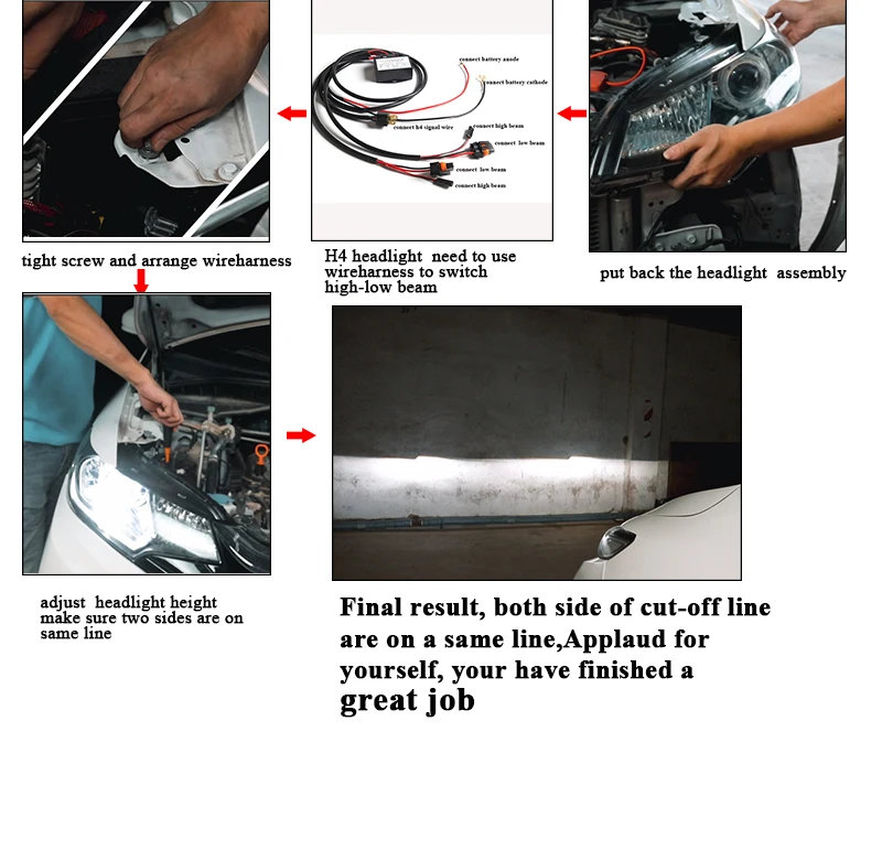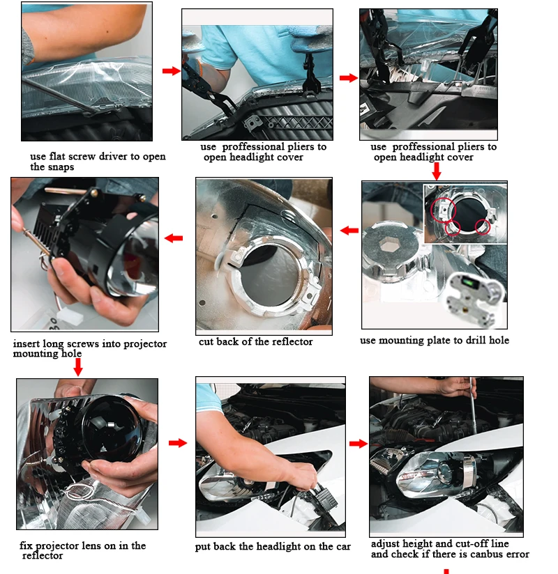 Установка: есть крепежная часть H4 И H7, часть H4 подходит для рефлектора H4, деталь H7 подходит для рефлектора H7. Монтажная деталь съемная. Размер монтажной рамы совпадает с hella 3r и hella G5, также подходит для фар проектора.