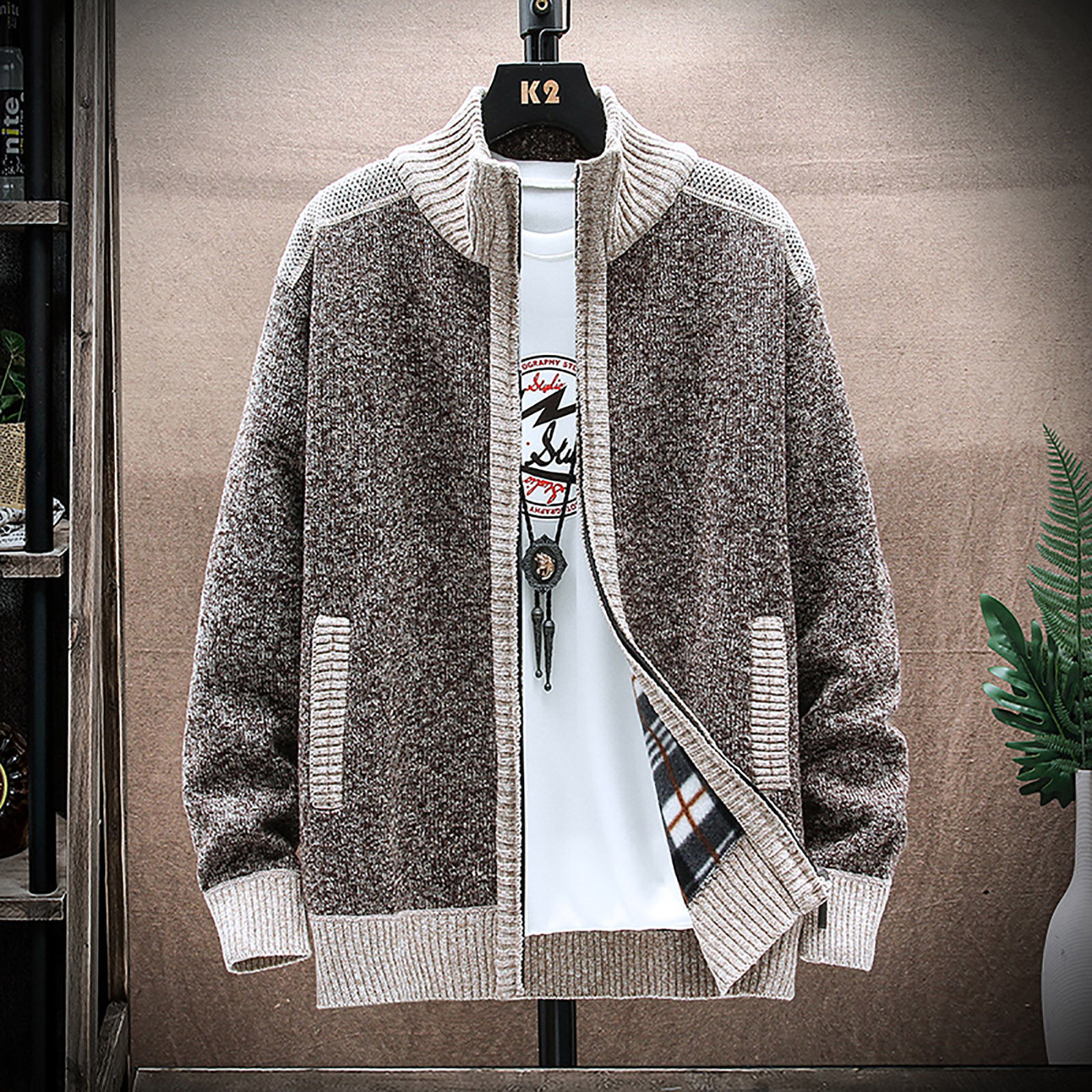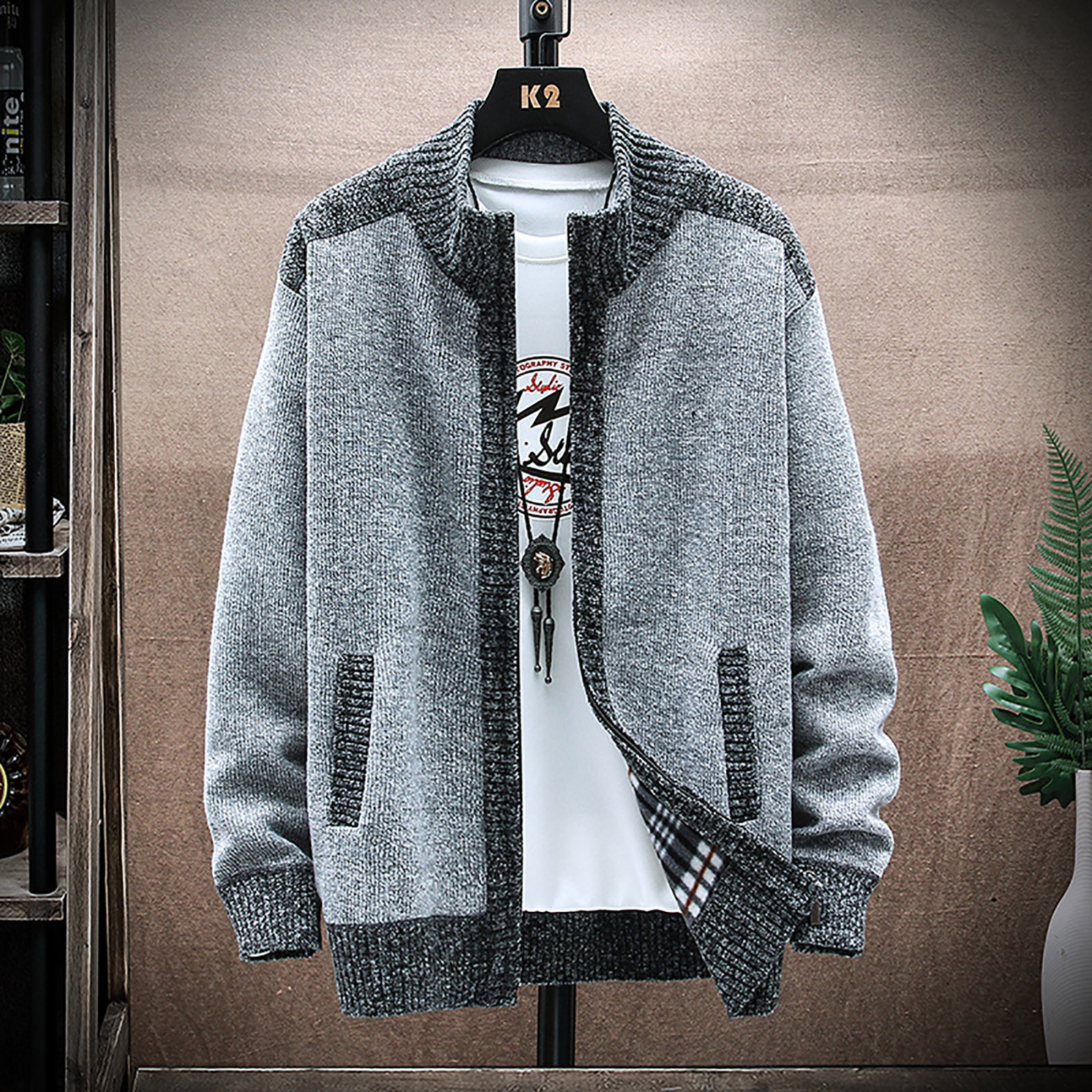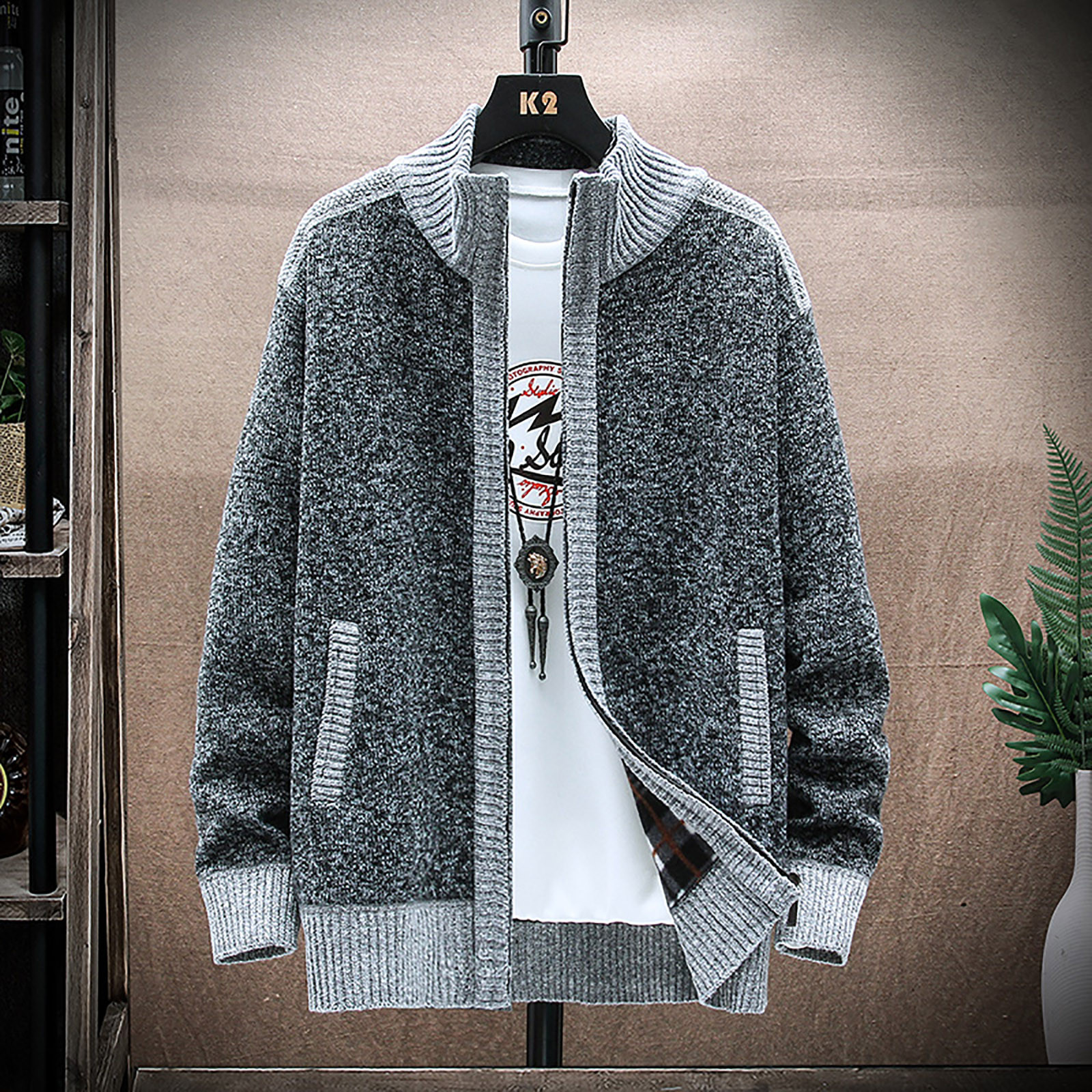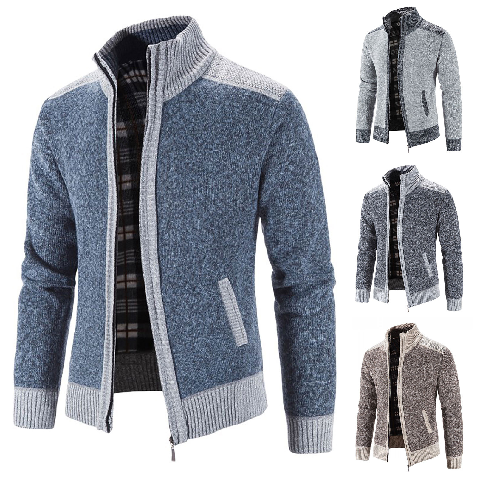 Мужской свитер пальто плюс бархатный Свободный вязаный свитер с принтом кардиган Повседневный