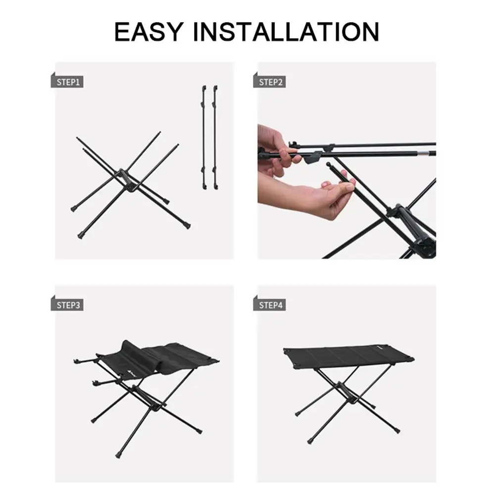 Сверхпрочные кронштейны из алюминиевого сплава с прочной поверхностью обеспечивают исключительную прочность, простоту установки и складывания, отлично подходят для пикника, пляжа, кемпинга, барбекю или путешествий.