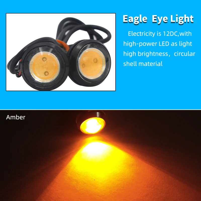 Чрезвычайно bright3000K янтарный (6000K белый, красный) 23 мм Противотуманные фары глаз орла DRL светодиодный лампы. Супер яркие лампы выпускают ультра чистый янтарный (белый, красный) светильник с низким энергопотреблением и низким нагревом, который может обеспечить гораздо Четкий просмотр во время вождения.