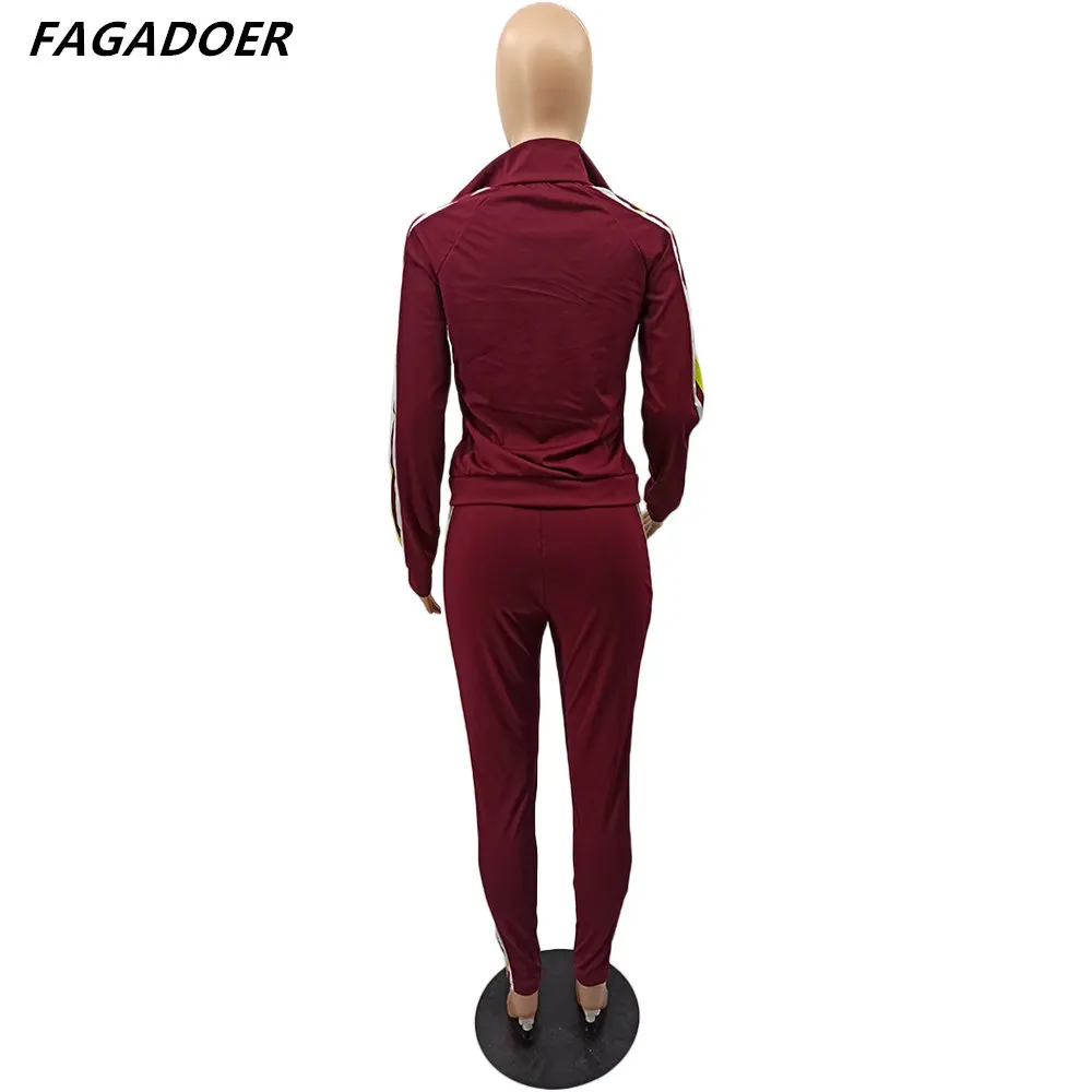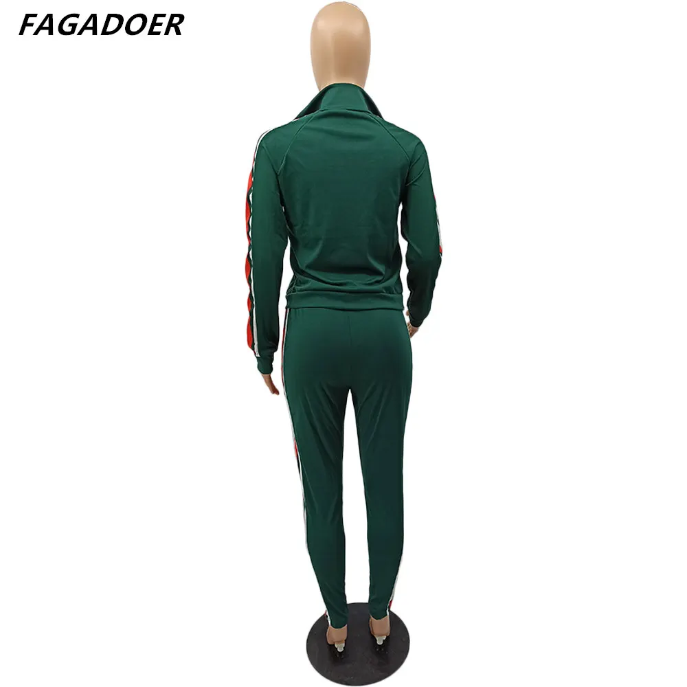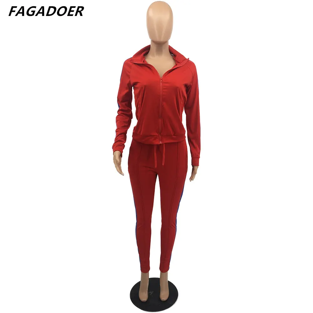 FAGADOER, однотонный спортивный комплект из двух предметов, женская осенняя одежда, куртка на молнии с воротником-стойкой, топ и длинные штаны, спортивный костюм, повседневная одежда