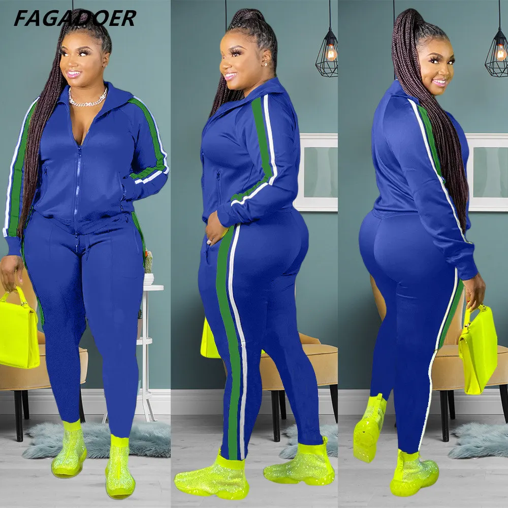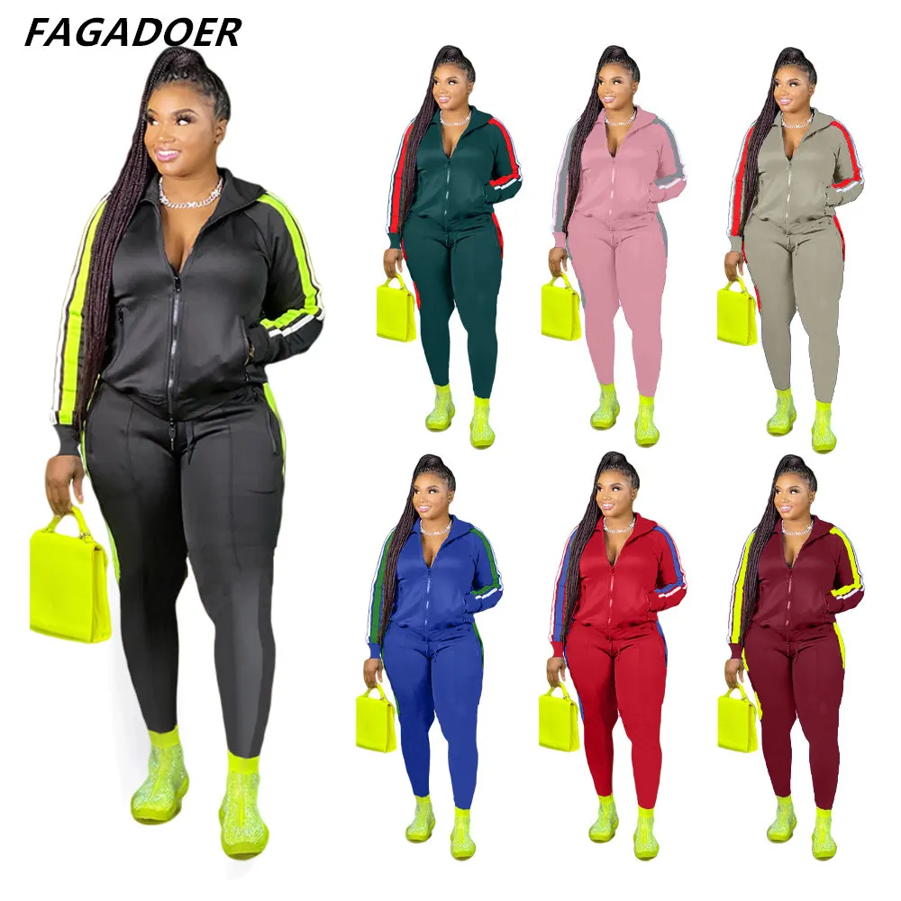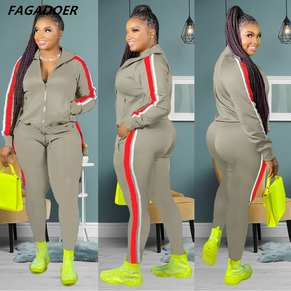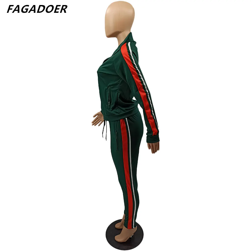 FAGADOER, однотонный спортивный комплект из двух предметов, женская осенняя одежда, куртка на молнии с воротником-стойкой, топ и длинные штаны, спортивный костюм, повседневная одежда
