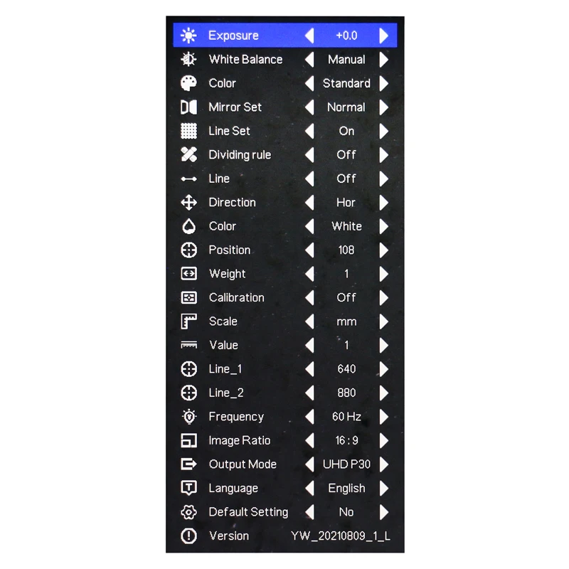 5. Нажмите левую и правую клавиши для регулировки требуемых параметров