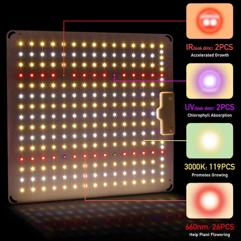 [Способствует цветению и плодоношению] Использование IR светодиодный для ускорения цветения и стадии плодоношения. Особенно для содействия росту огурцов и томатов.