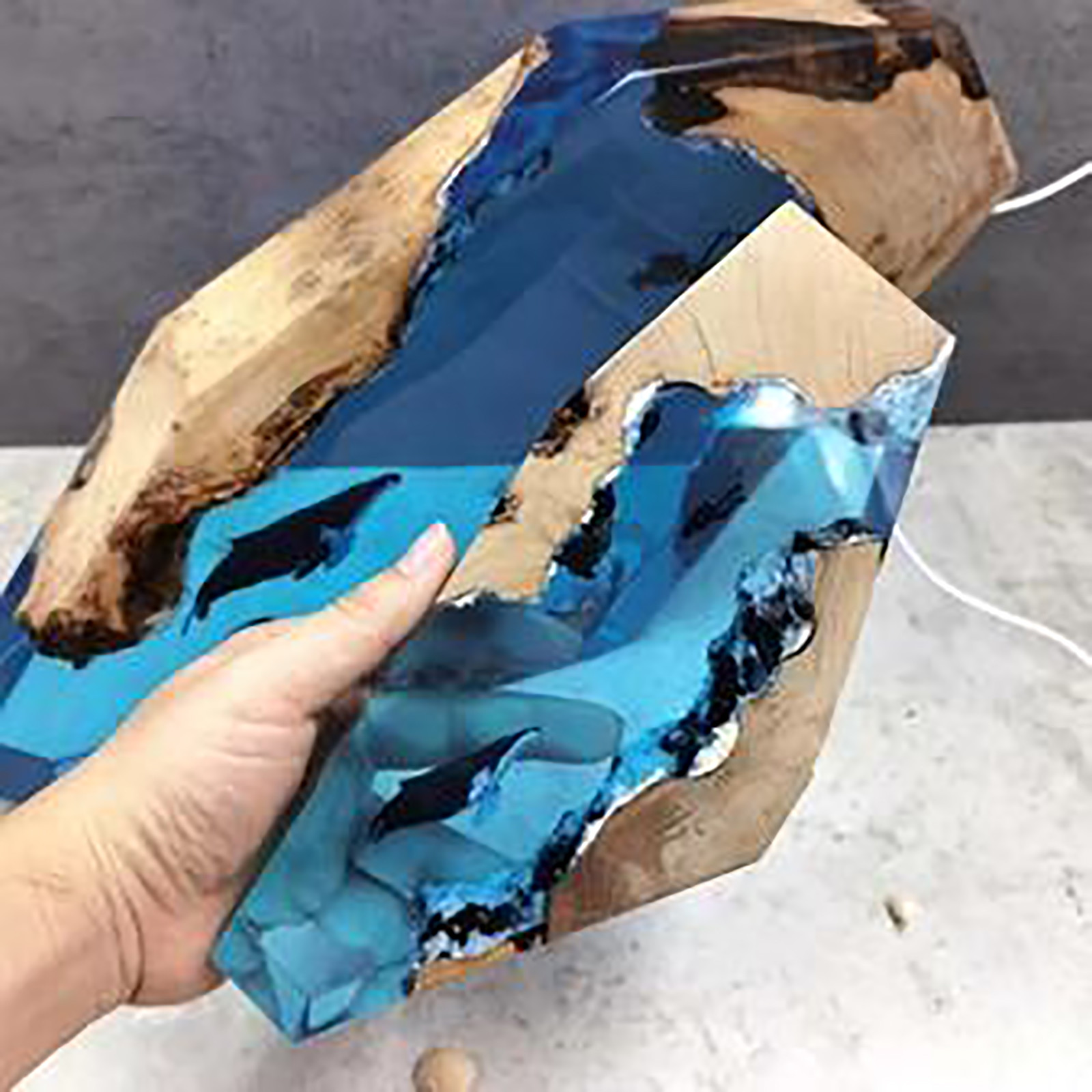 Эта большая эпоксидной смолы деревянного лампа также может быть оснащен энергосберегающий светодиодный ламп. Он используется для длительного времени