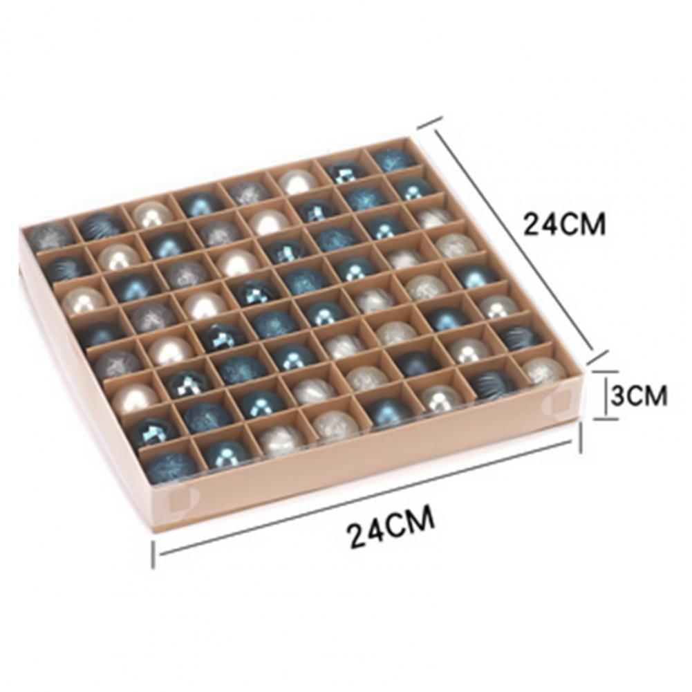 Одиночный декоративный диаметр шарика 3 см. Длина коробки для хранения составляет 24 см, ширина-24 см, высота-3 см.