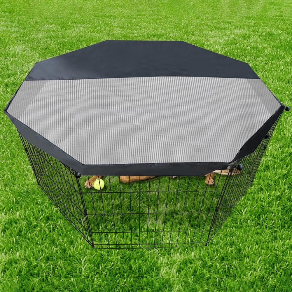 Полусетчатый и полутканевый дизайн делает эту собачью манеж верхней крышкой хорошей воздухопроницаемостью, предотвращает сильные ультрафиолетовые лучи и обеспечивает тени для домашних животных.