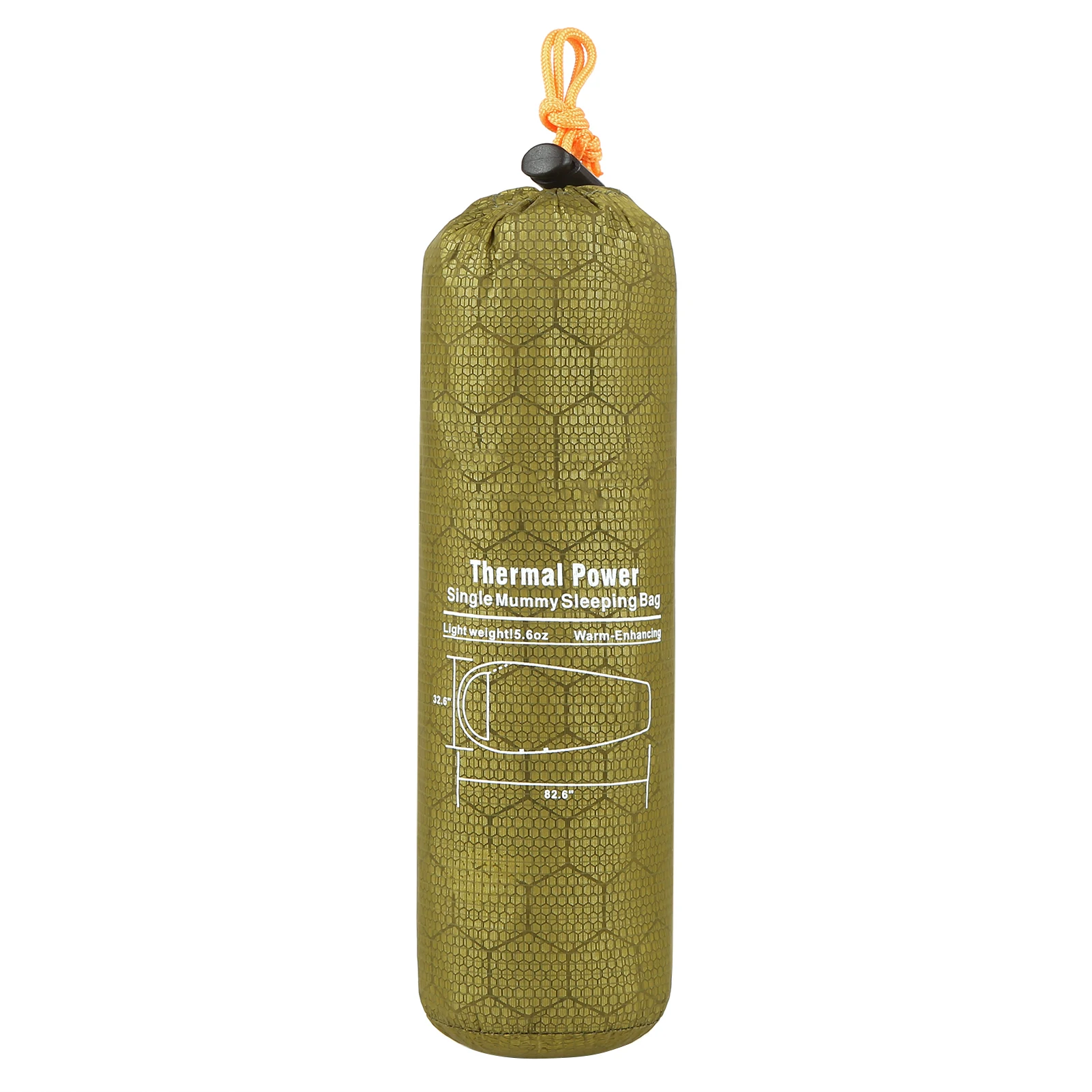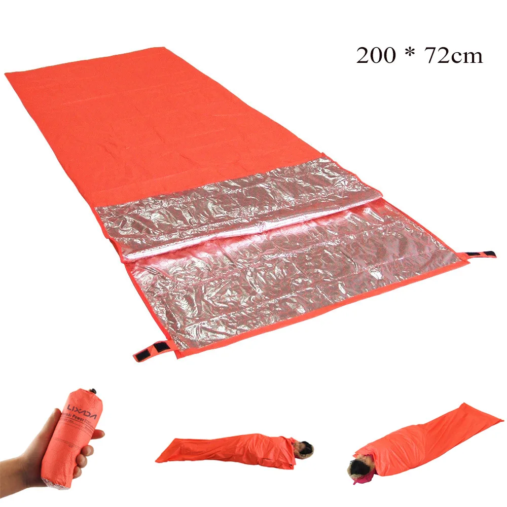 Этот аварийный спальный мешок изготовлен из водонепроницаемой нейлоновой ткани и теплоотражающего алюминиевого внутреннего покрытия, чтобы держать вас в тепле при низкой температуре. Он легкий и может складываться в компактный размер для удобного хранения и переноски. Идеально подходит для кемпинга, пеших прогулок, альпинизма, приключений на открытом воздухе, выживания и т. д.