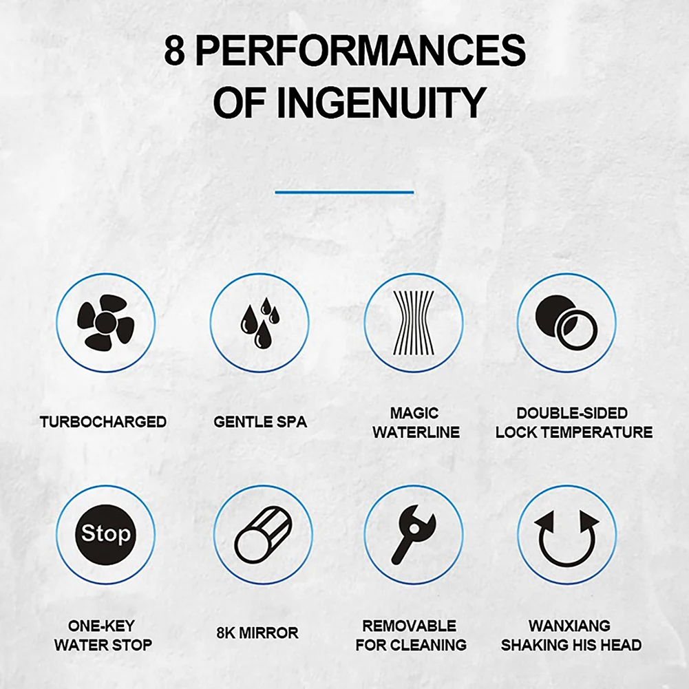 Feature: 1.Equipped with luxurious multifunctional hand-held small waisted shower head and 59-inch long stainless steel hose 2.Design of pressure fan: The principle of turbocharged fan is to improve the internal structure of the shower and increase the internal air pressure of the hand-held shower. When the water enters the shower head, it will be completely mixed with the air, forming a strong water flow to rotate the internal fan. This can help you get rid of the problem of low water pressure. 3.(1.5m long water pipe): It is more convenient to use the hose of the shower. High-quality hose with international interface structure, with multi-layer antirust and rotary knotting functions, adopts universal installation mode, and shower head is also suitable for most standard shower arms. Just screw in and install without tools. 4.Water-saving shower: The shower adopts microporous design, with smooth and sensitive water flow, which can effectively save water by more than 20%. There is a button flow control for manual operation on the handle. You can hold the hand-held shower and turn off the water source while using shampoo to realize one-button switch. 5.Universal/Replaceable: The shower joint is a 2cm universal joint, which is suitable for all standard shower hoses. The shower head adopts anti-blocking and detachable design, making it easy to replace. If the shower is used for a long time, water leakage and blockage may occur. Just remove the stainless steel panel and clean it Specification: Color: Plating Silver,Gold, Rose Gold Main material: ABS Size: Hose length: 1.5 meters Shower head: 27*9cm/10.6x3.5in Note: Due to the different monitor and light effect, the actual color of the item might be slightly different from the color showed on the pictures. Thank you! Please allow 1-2cm measuring deviation due to manual measurement.