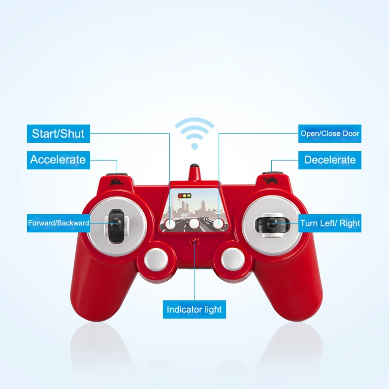 2. Функции: вперед, назад, поворот налево, поворот направо, рог, ускорение, торможение, открытие/закрытие дверей.
