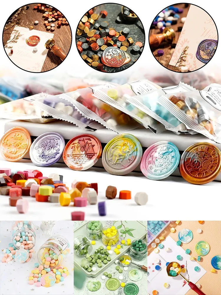 100 шт. смешанные цветные уплотнительные восковые частицы подходит для конвертов свадебная открытка штамп восковое уплотнение винтажная восьмиугольная форма