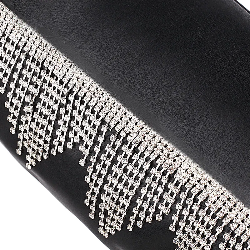 Женские ботфорты с бахромой Черные Сапоги выше колена на высоком каблуке острым