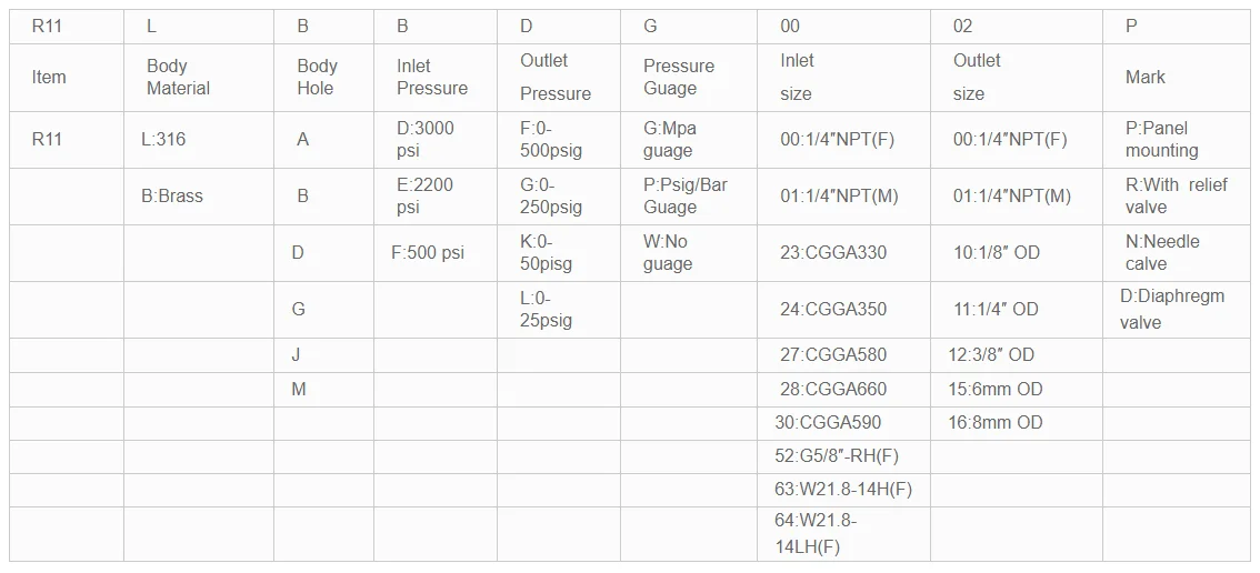 *Outlet pressure: 0~25, 0-50, 0-100,0-250, 0-500psi