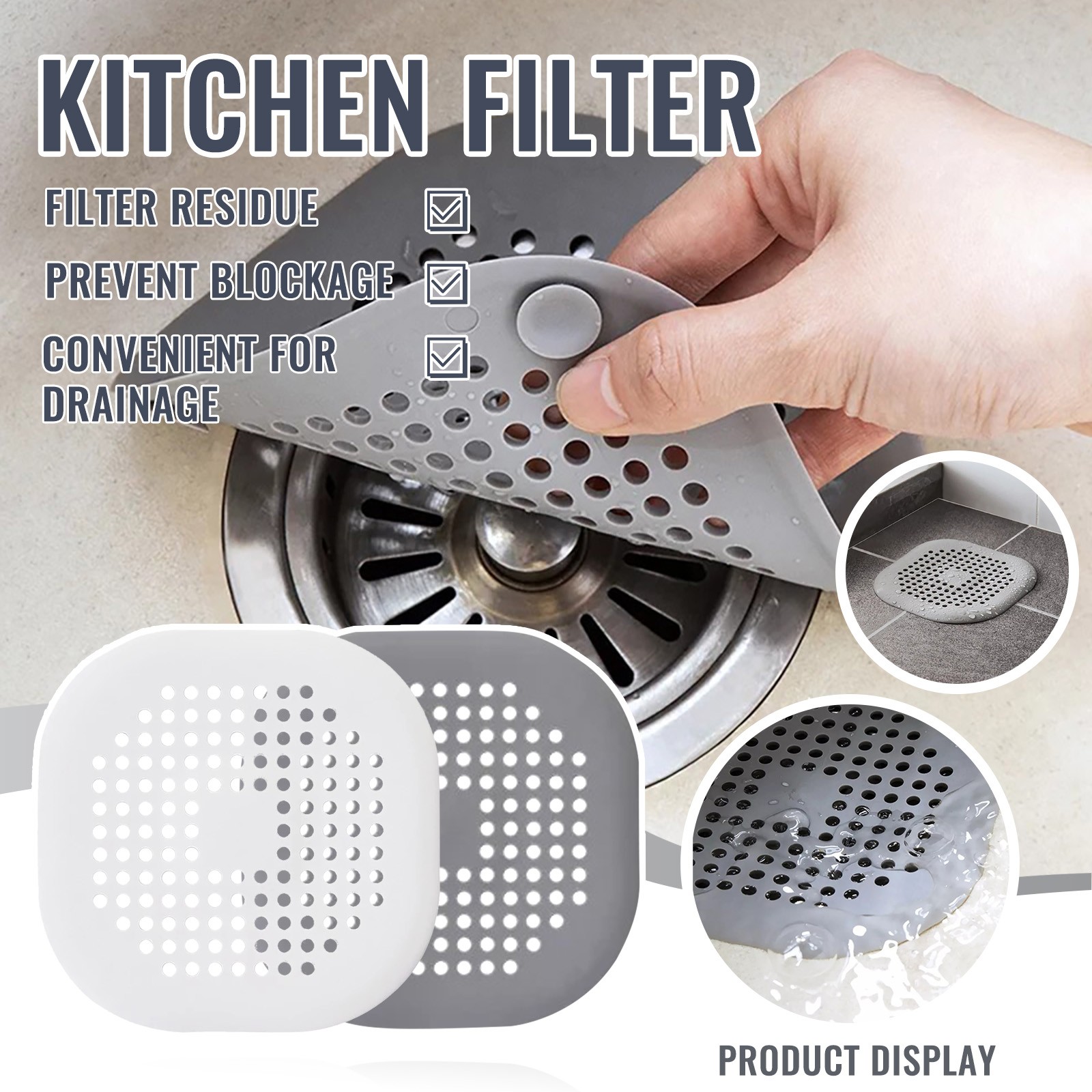 Кухонная раковина анти-блокирующий фильтр бытовой ванной овальной присоской пол