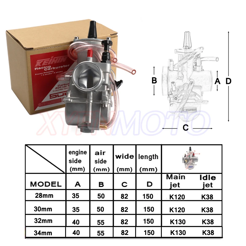 Смотрите: различные двигатели мотоцикла, используйте разные размеры carb.