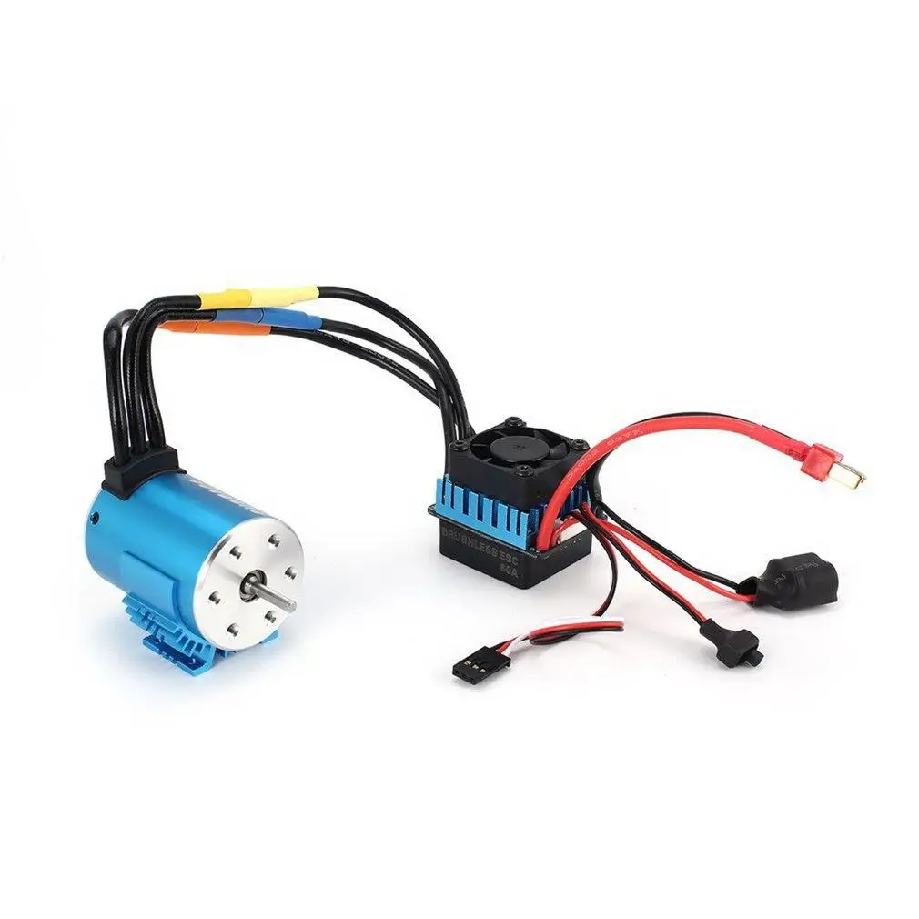 1.This professional brushless motor comes with heat sink 60A Brushless ESC set.