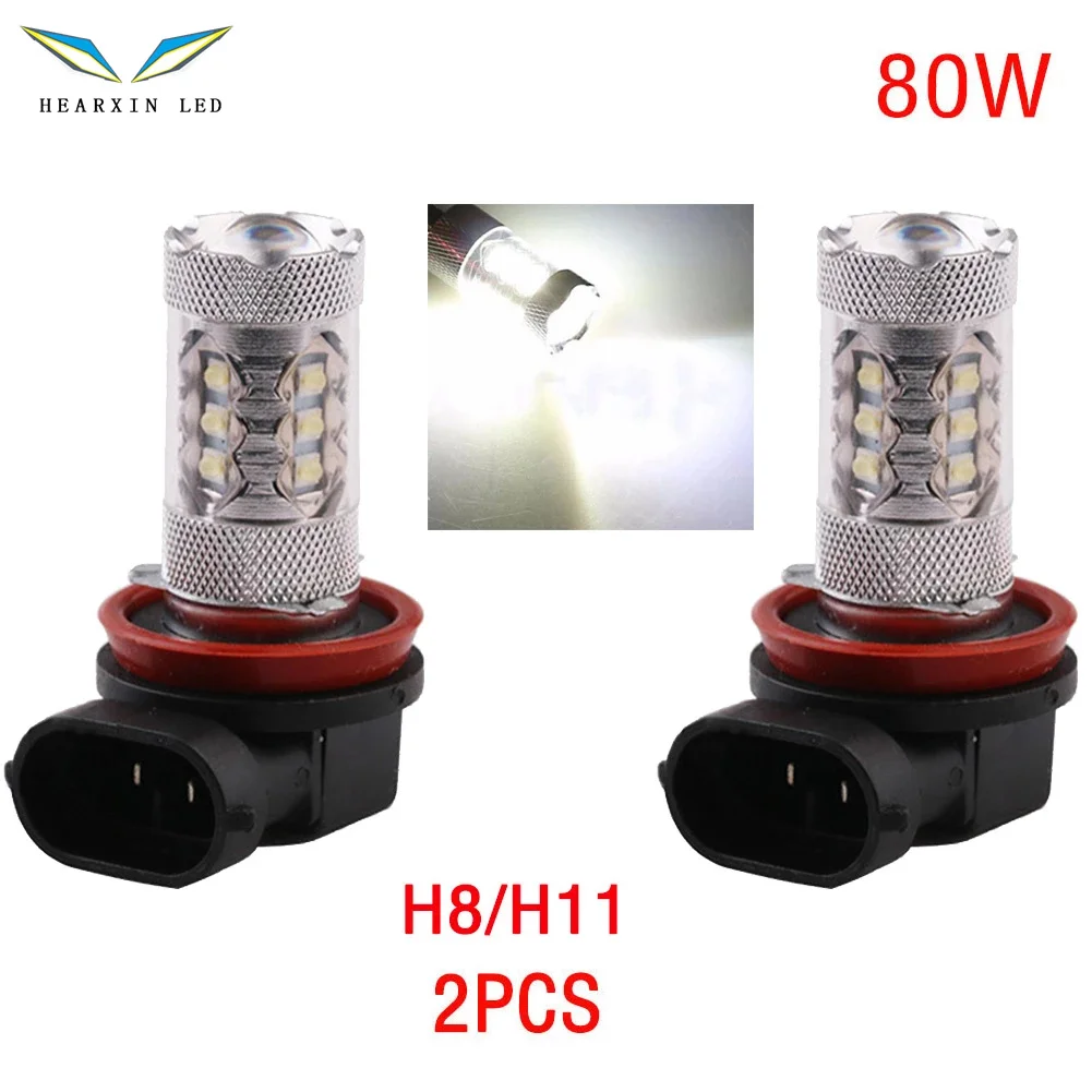 2pcs 80W LED Light Bulb H8/H11 9006 9005 H7 H4 H3 H1 2828 SMD Super Bright 12V LED Car Headlight Fog Light DRL Lamp Bulb