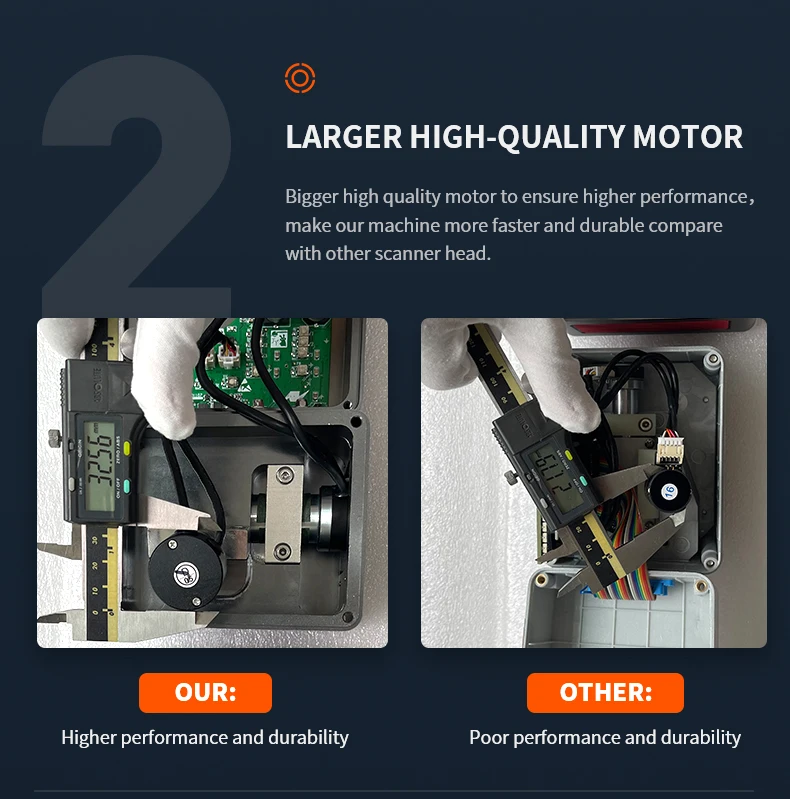 Более качественный двигатель обеспечивает более высокую производительность, делает нашу машину более быстрой и долговечной по сравнению с другой головкой сканера.