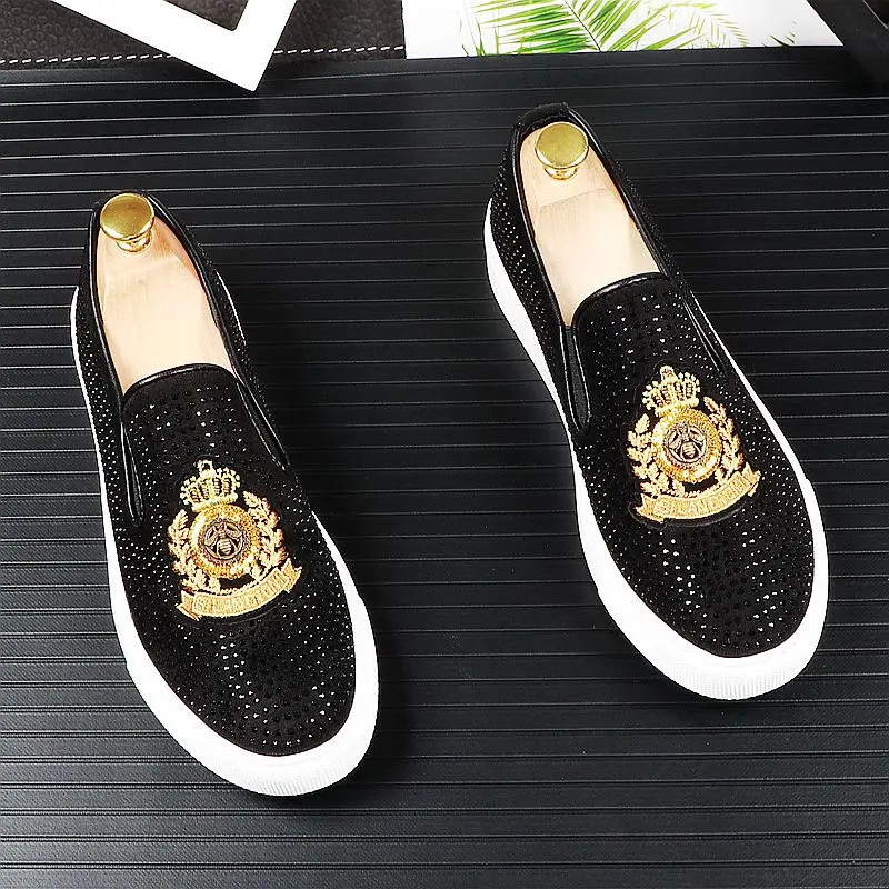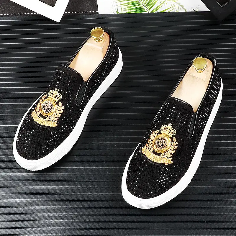 Мужские модные замшевые кожаные мокасины с вышивкой Стразы лёгкие туфли типа