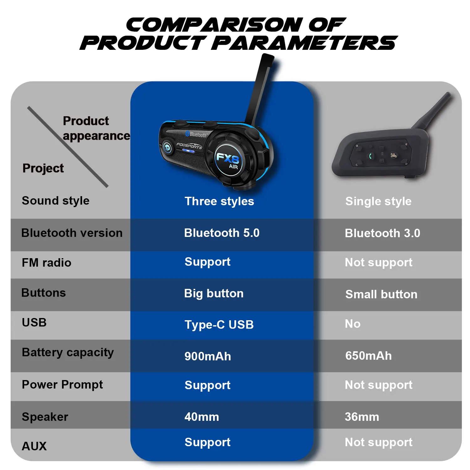 1.FX8 Air специально разработан для двух человек, чтобы кататься. Устройство может поддерживать соединение 2 гонщиков и говорить одновременно. Встроенная антенна внутренней связи, расстояние внутренней связи до 1000 метров;