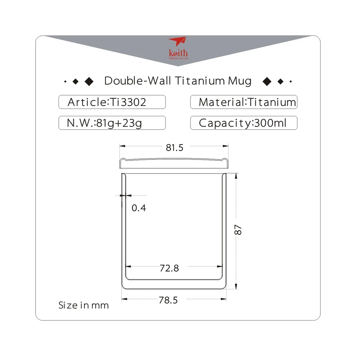 Кружка с двойными стенками изготовлена из чистого титана без подкладки и премиального покрытия. Он безвкусный, без запаха и нетоксичный. Первоначально предназначенная для пеших прогулок, кемпинга и путешествий, эта кружка также идеально подходит для пикников, дома и в офисе. Титан-это сверхпрочный светильник; Он экологически чистый, биосовместимый и антибактериальный; Он также чрезвычайно гипоаллергенен и исключительно устойчив к коррозии.