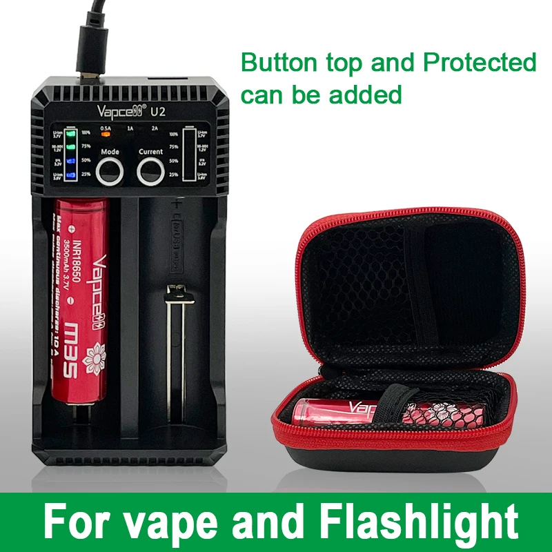 · Каждый 2 Упакованные батареи в один чехол на молнии Vapcell (18650,20700,21700,20650,26650) или пластиковый чехол (14500,16340,18350,18500).