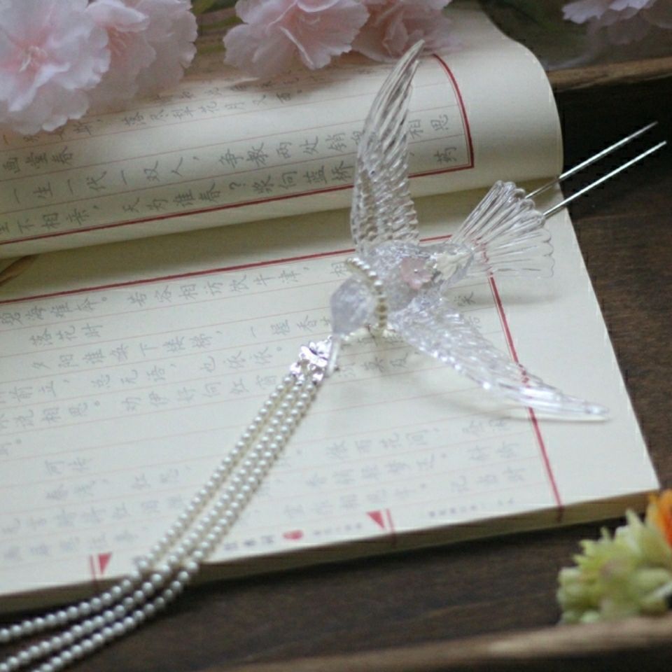 Antique Accessories Transparent Bird Hairpin with Tassel Pendant for Women Cosplay Vintage Chinese Style Clothes Headdress