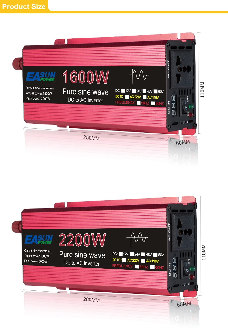 Чистый синусоидальный инвертор 3000 Вт 2200 Вт 1600 Вт 1000 Вт напряжение постоянного тока 12 В 24 В в переменный ток 110 В 220 В трансформатор Преобразователь мощности Солнечный инвертор
