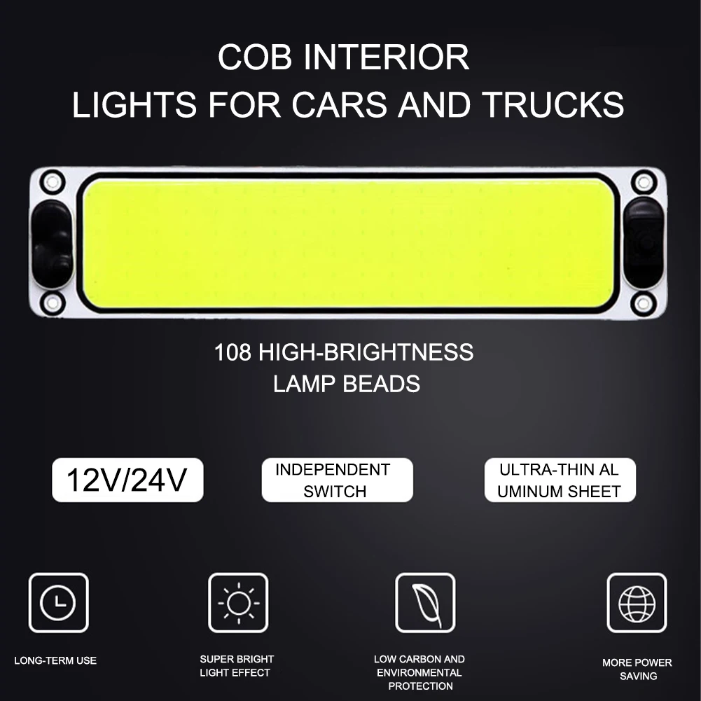 Интерьер автомобиля светильник 108SMD 12V-24V COB Readling светильник светодиодный Панель светильник лампы для фар купольный светильник Водонепроницаемый самоклеящаяся грузовик светодиодные лампы
