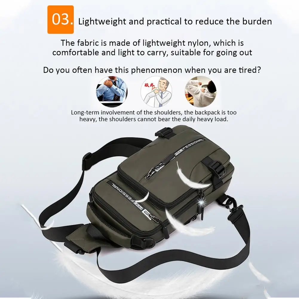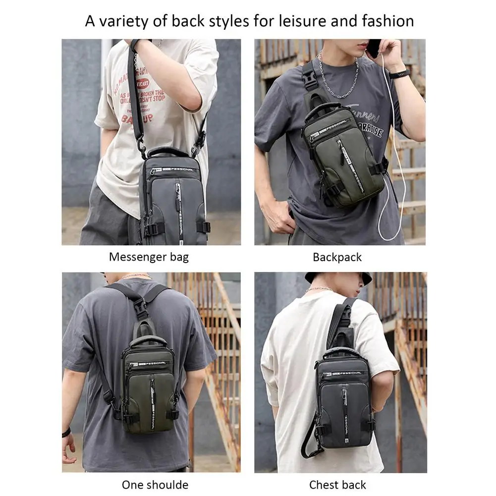 Мужской нейлоновый рюкзак-слинг с USB-портом для зарядки | Спорт и развлечения
