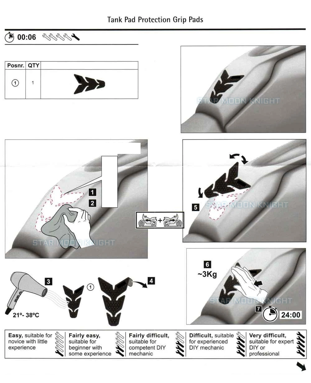 Комплект из трех предметов: накладка на бак для верхней части плюс две боковые ручки для левой и правой стороны колодки на бак приклеены к установке бака Примечание: клейкие накладки на боковом резервуаре должны затвердевать в течение 24 часов до первой поездки