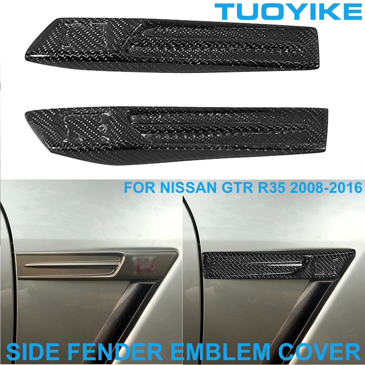 LHD RHD настоящий углеродное волокно боковое крыло Fin Vent эмблема логотип декоративная крышка отделка Гонки стикер для Nissan GTR GT-R R35 2008-2016![]()