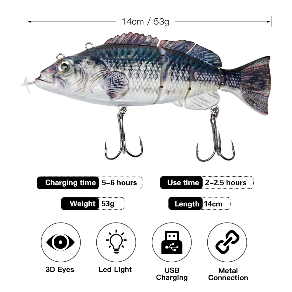 Роботизированная рыболовная приманка, Электрический воблер, мульти соединенный 4 сегмента, 14 см, авто плаванье, плавающая приманка, Usb Перезаряжаемый светодиодный светильник, бас щука