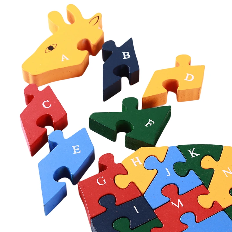 Деревянная головоломка для малышей, детей, детей, ранние занятия, усвоенный интеллект, мультфильм, животное, мозаика с жирафом, головоломка, деревянные игрушки