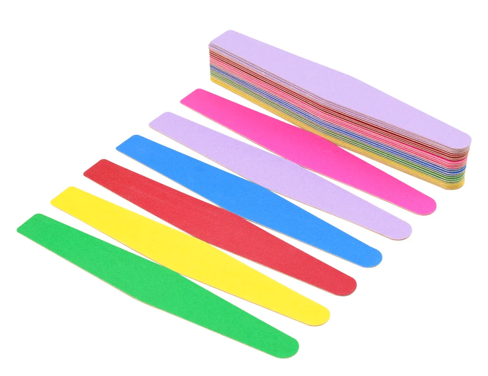 25 шт./партия, тонкие деревянные пилочки для ногтей, трение 240 Грит, двусторонняя шлифовка, Ромб, различные цвета, инструменты для маникюра и педикюра
