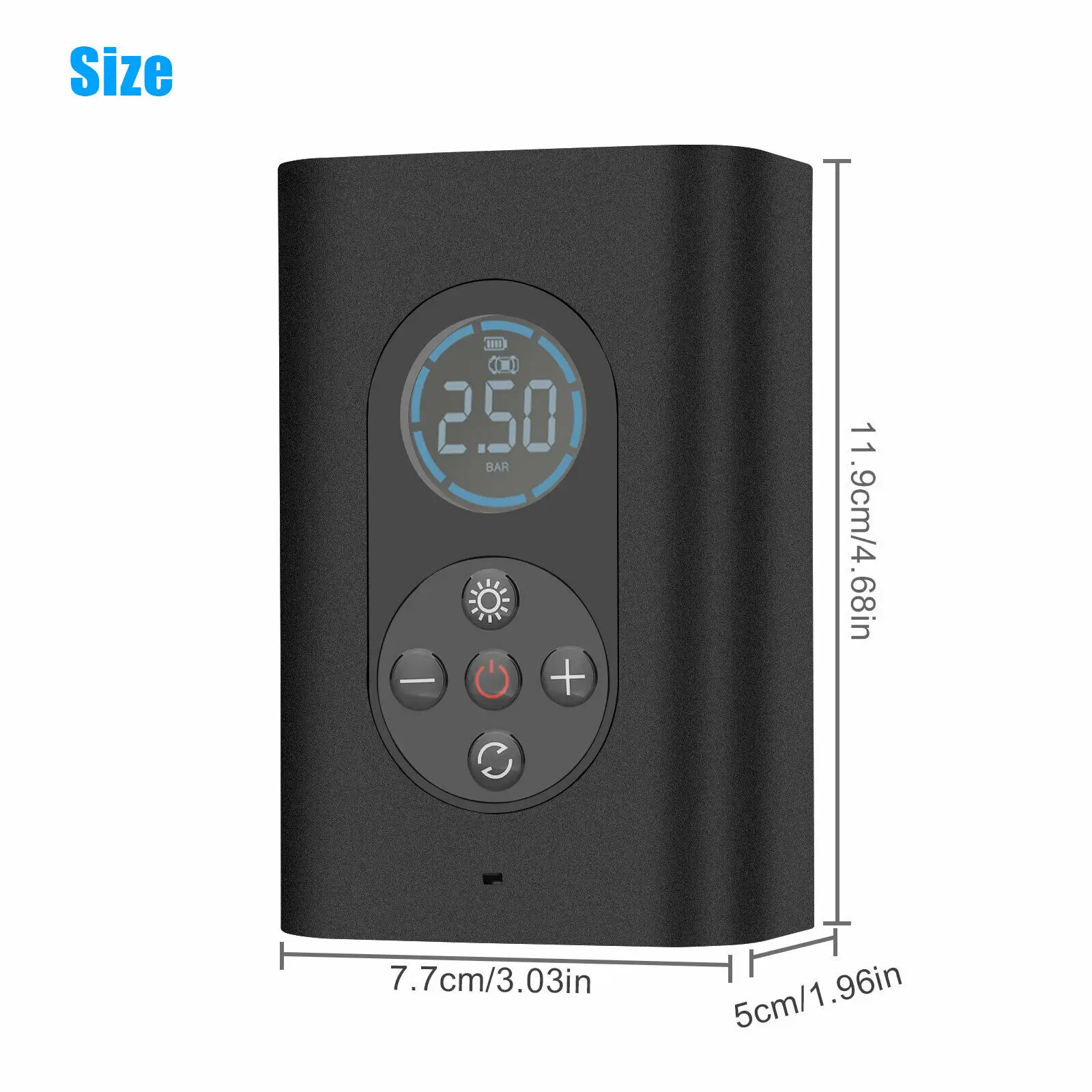 * 150PSI Smart Air Pump: Inject air through the preset required air pressure; when the set air pressure is reached, the filling can be automatically stopped. At the same time, you can stop inflation by short pressing the start-stop button during the inflation process.