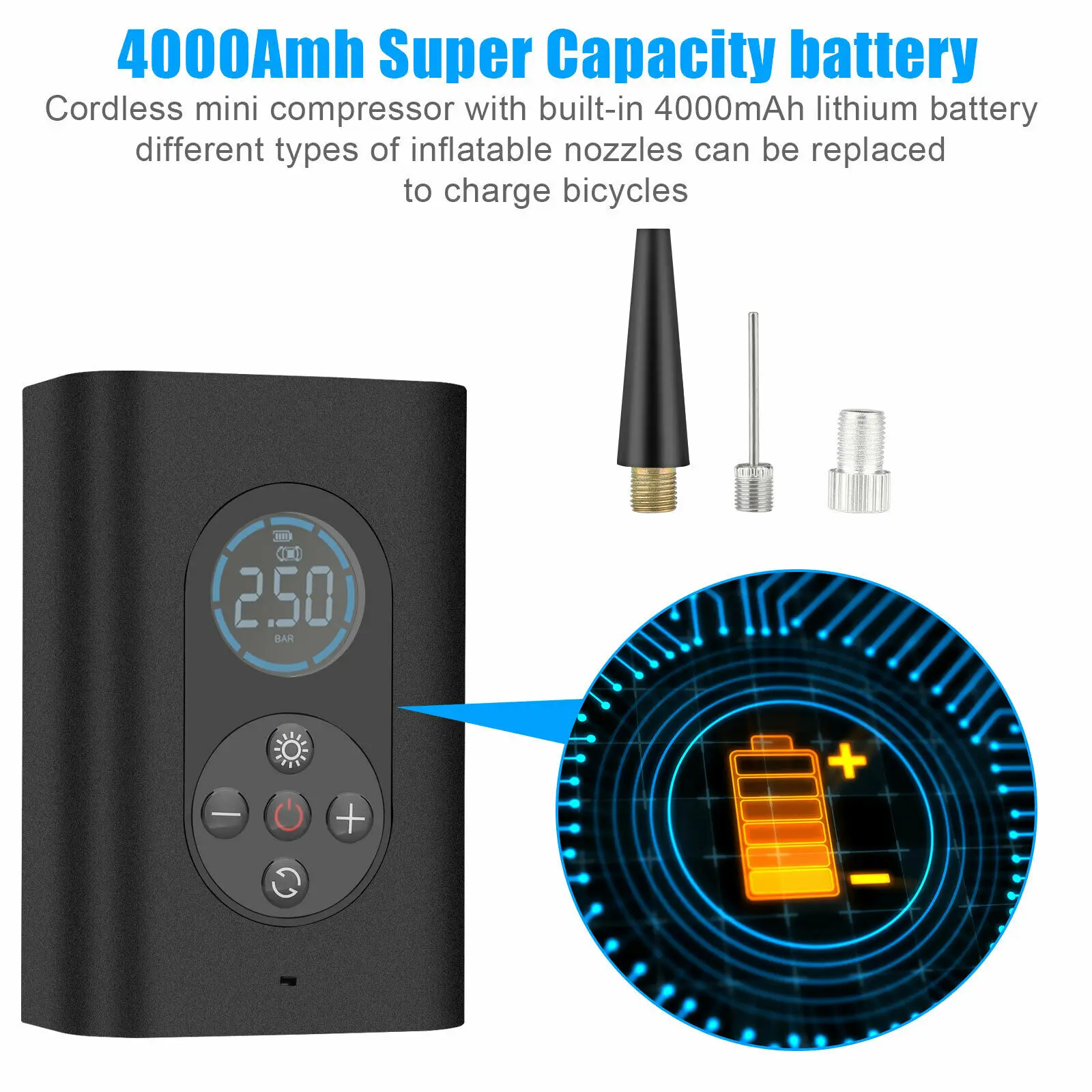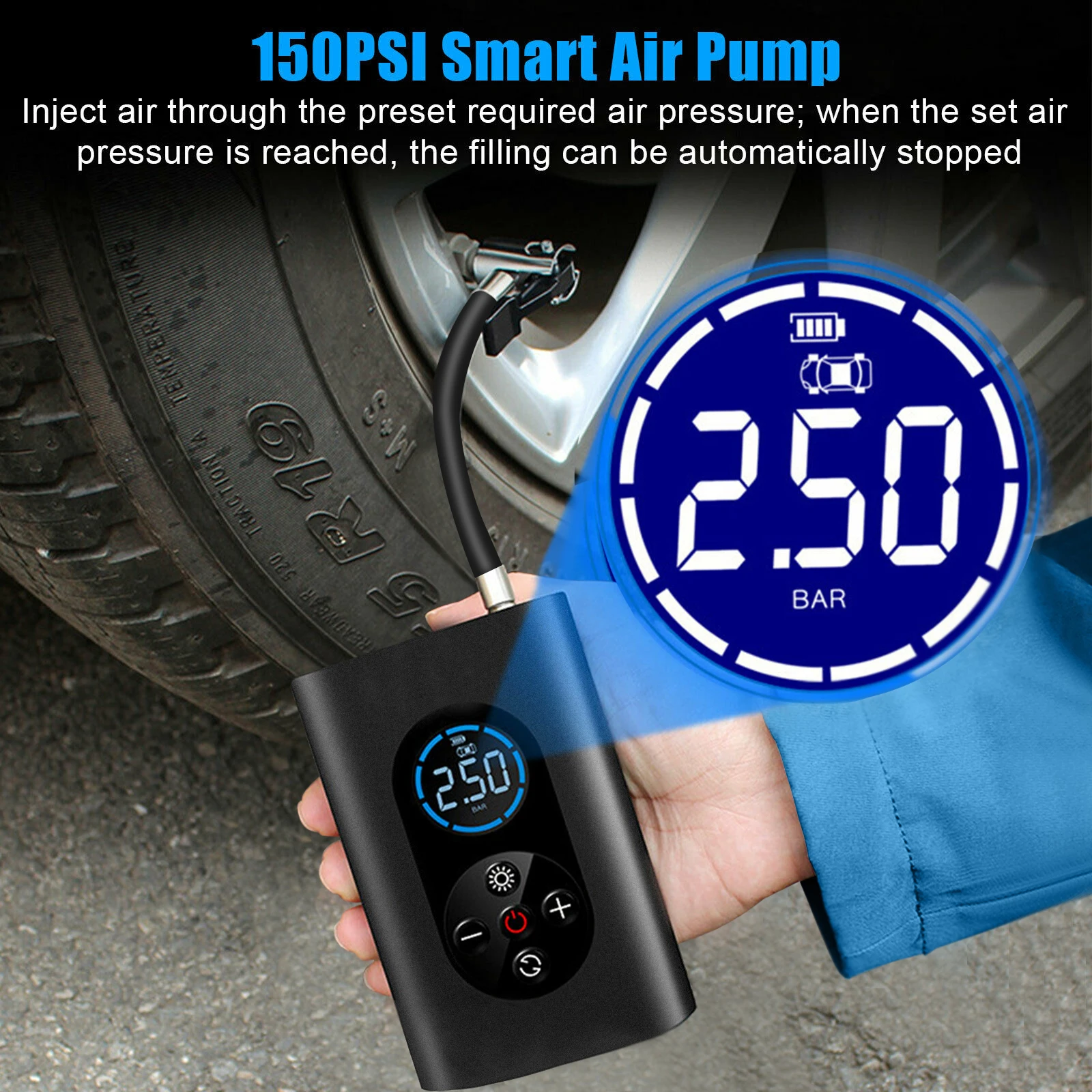 12V 150PSI Rechargeable Air Pump Tire Inflator Cordless Portable Compressor Digital Car Tyre Pump for Car Bicycle Tires Balls